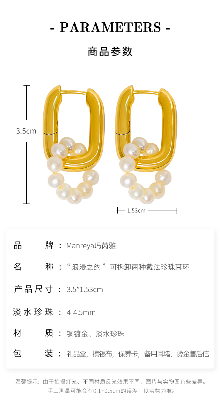 Manreya玛芮雅 浪漫之约 可拆卸两种戴法珍珠耳环