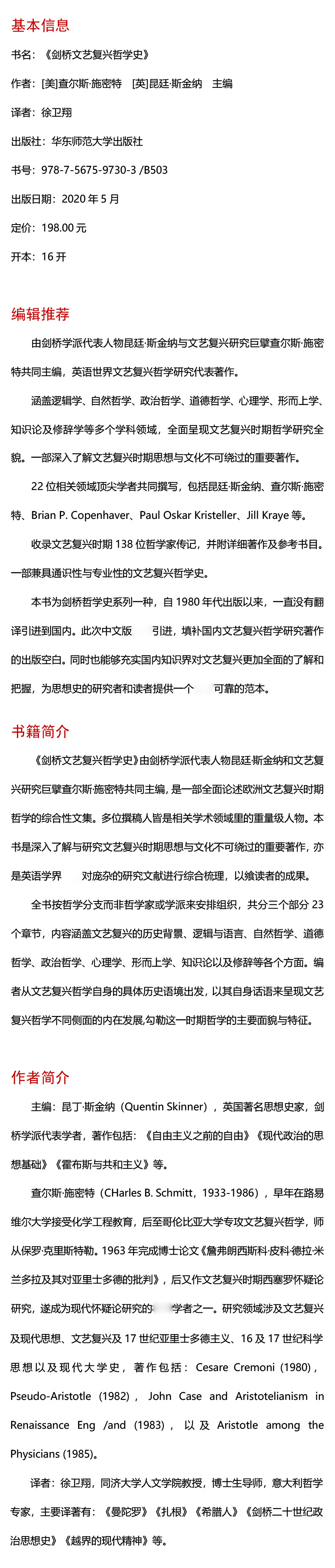 剑桥文艺复兴哲学史 文艺复兴时期思想与文化 文艺复兴哲学家小传 传记 正版 精装