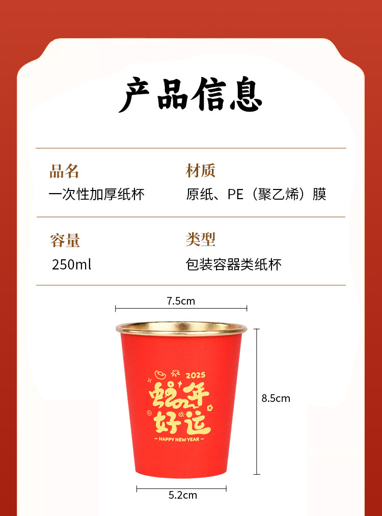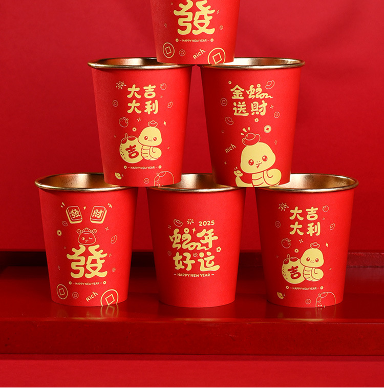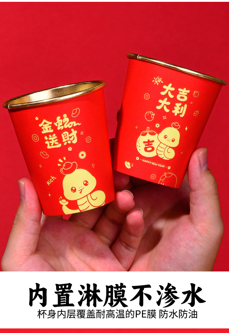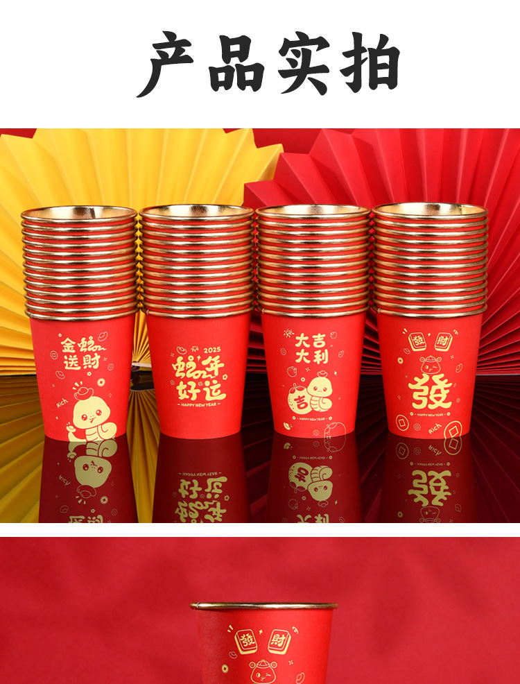 【一次性加厚纸杯】2025蛇年春节纸杯防烫手耐高温一次性加厚家用金箔淋膜纸杯子。ry