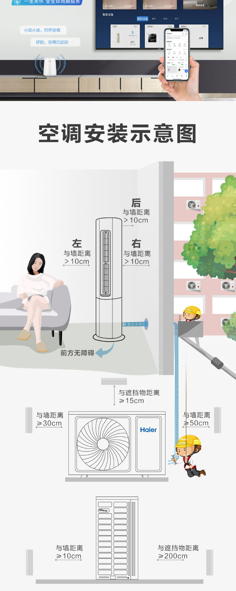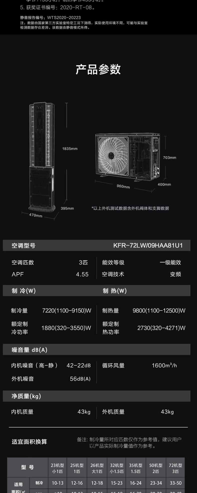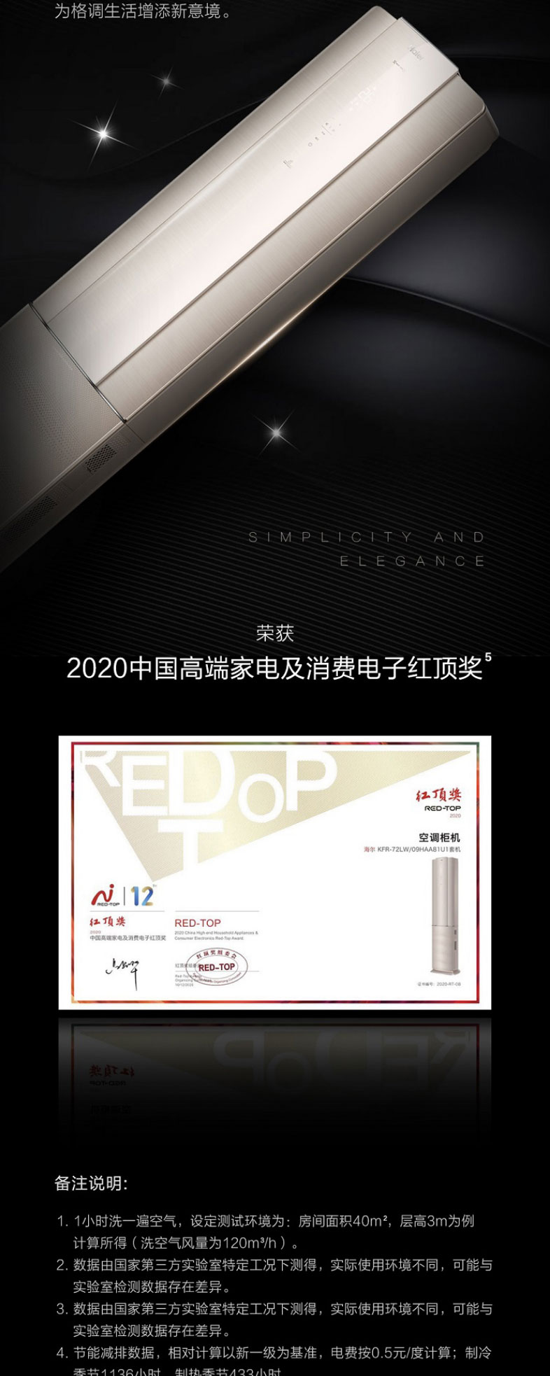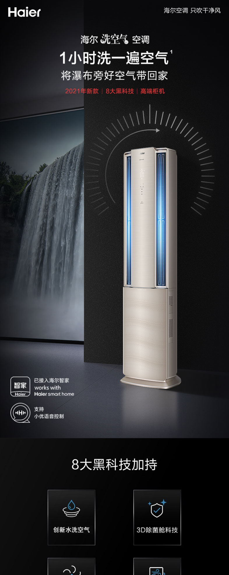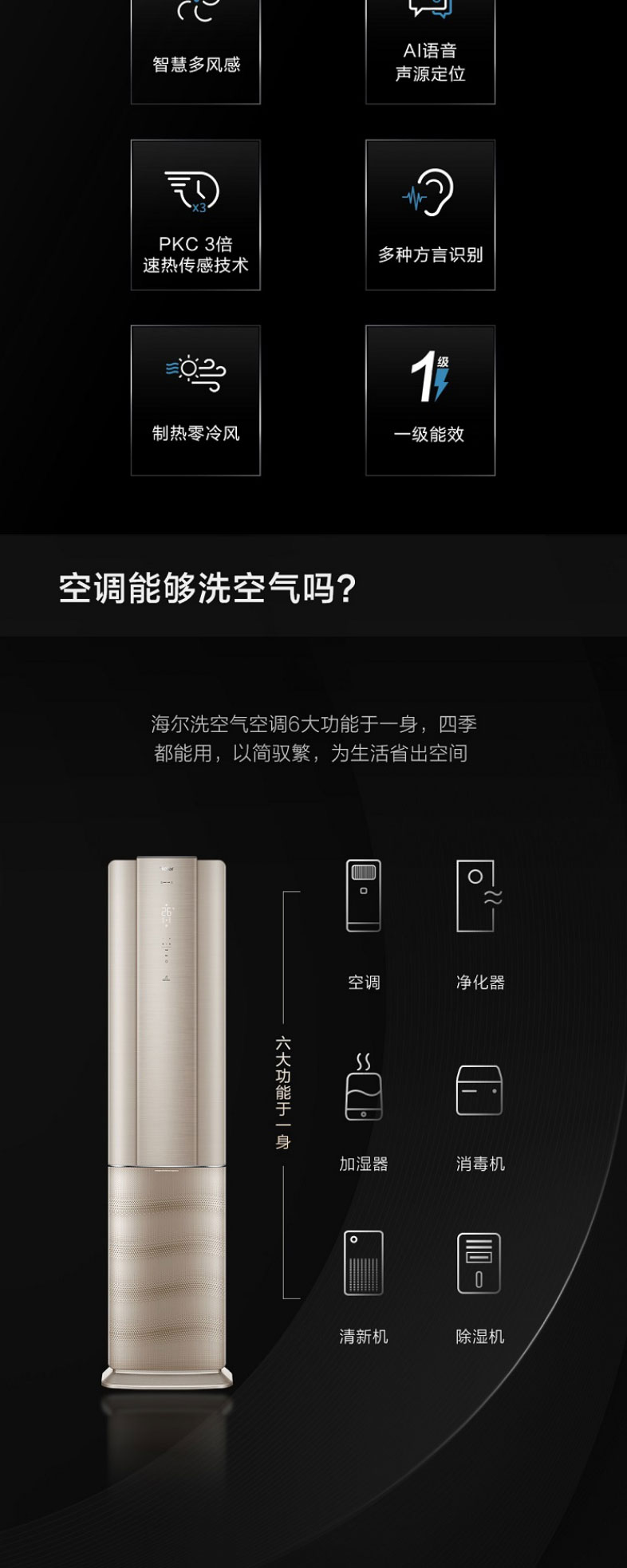 海尔新一级 3匹 洗空气空调立式柜机 变频 风随人动 离子除菌KFR-72LW/09HAA81U1