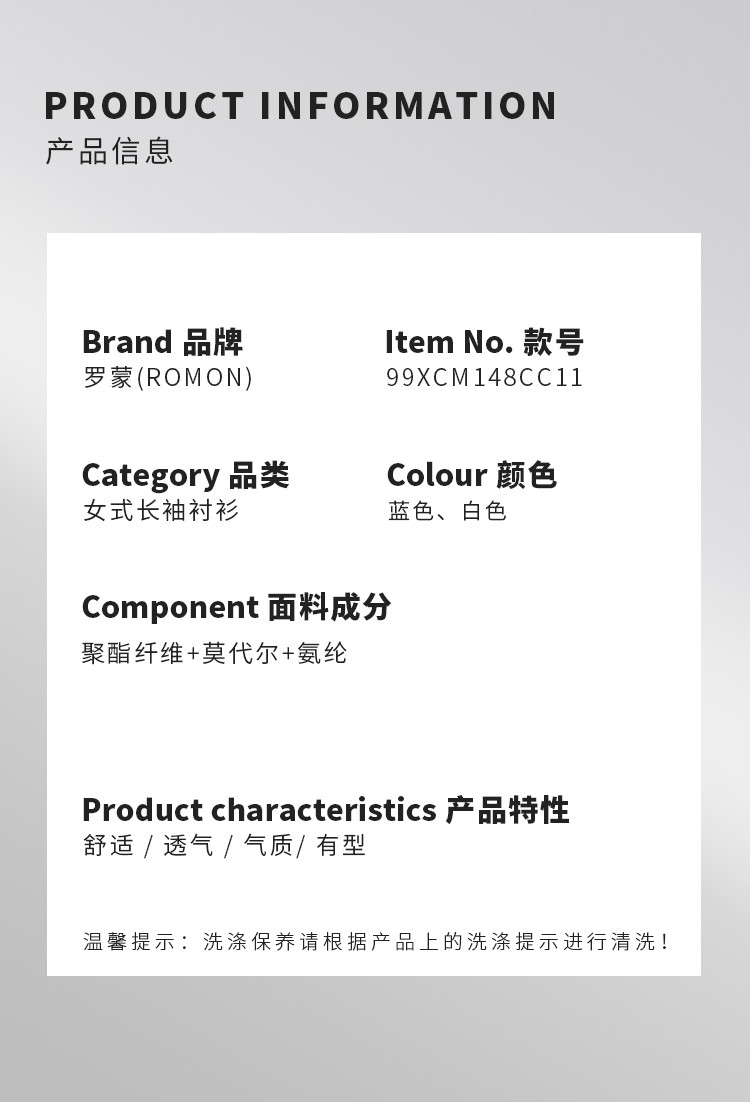 【含莫代尔】罗蒙女士衬衫简约大方通勤百搭舒适简约长袖衬衣女
