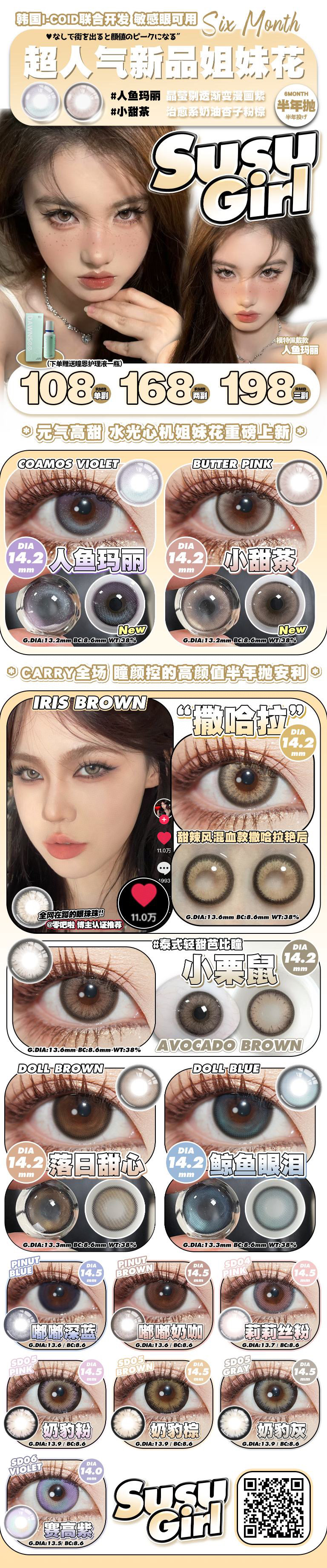 【常规-半年抛活动】SUSUGIRL--14.5mm14.2mm14.0mm【半年抛 度数0-800度 无525/575】