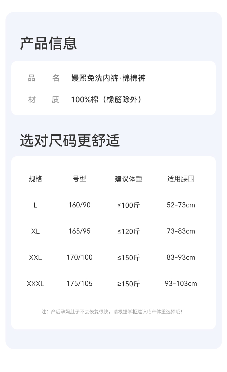 【一次性用品】嫚熙E7一次性内裤女7A抗菌女士纯棉