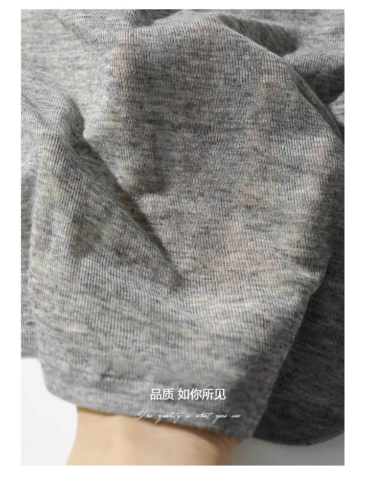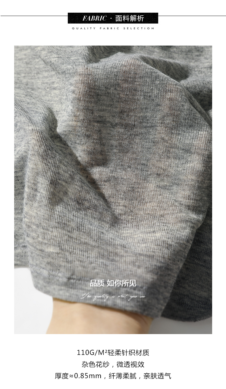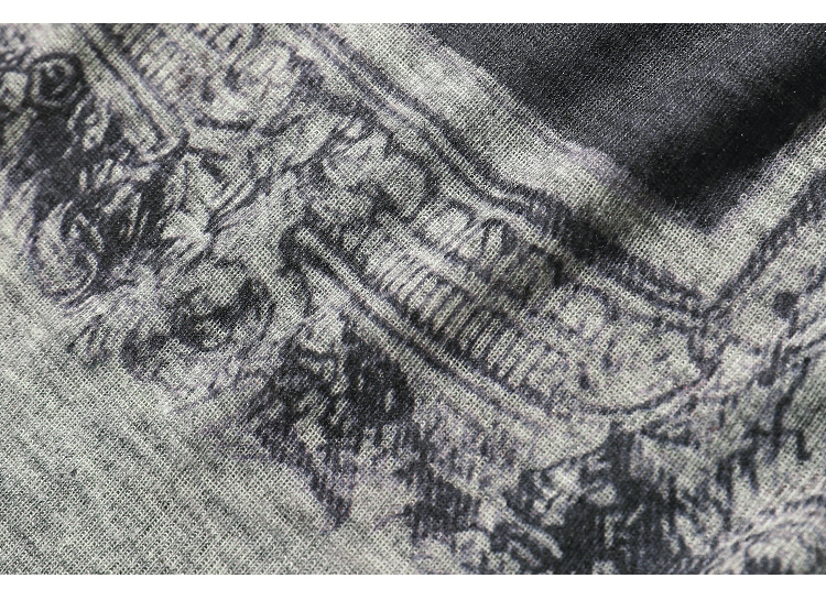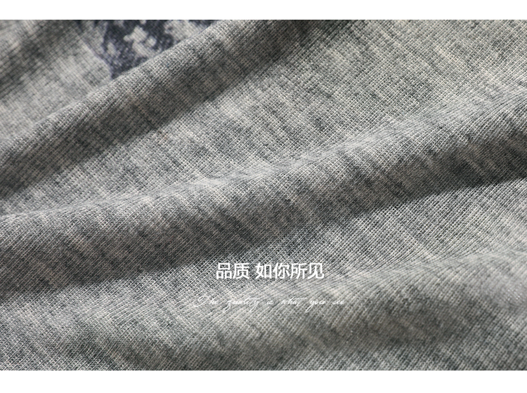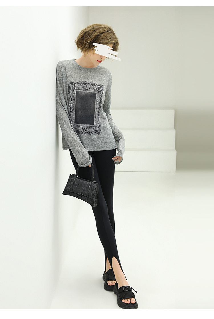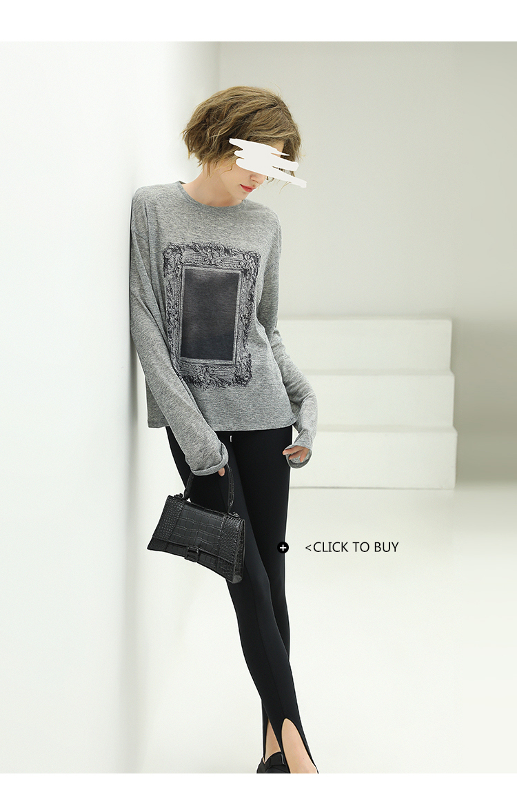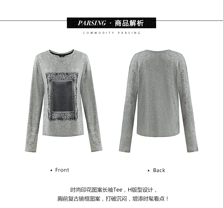 COCOBELLA时尚巴洛克印花长袖T恤女花纱灰色宽松针织上衣TS44