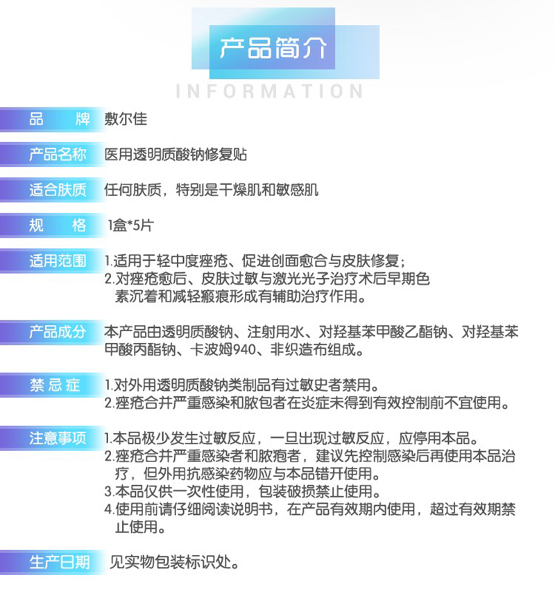 敷尔佳 透明质酸钠修复白膜 5片/盒