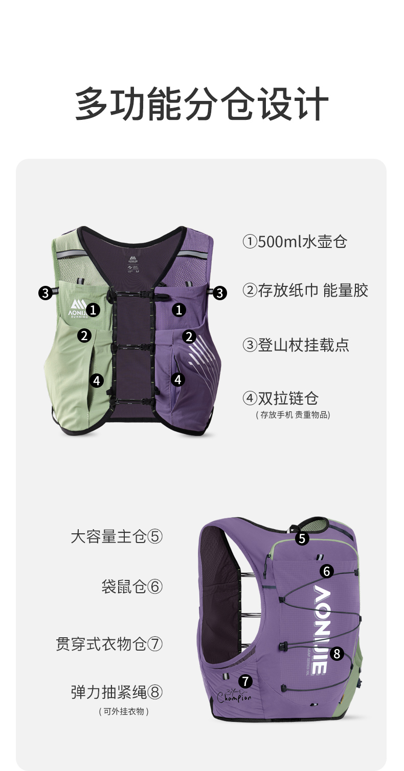 冠军系列•越野跑背包10L-山峦紫翠「送水壶或杖包」