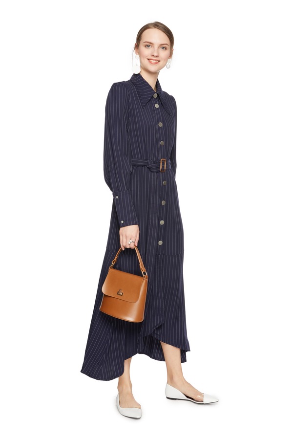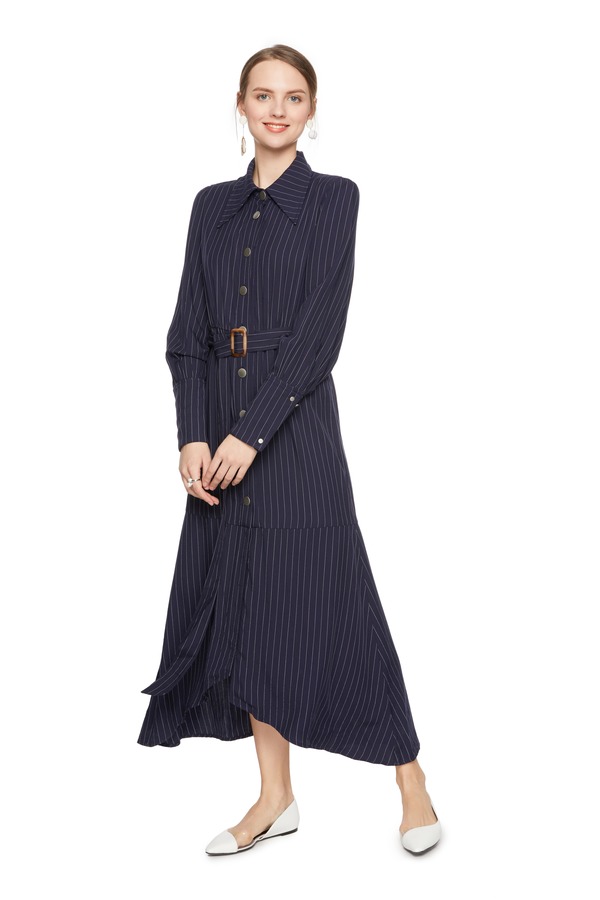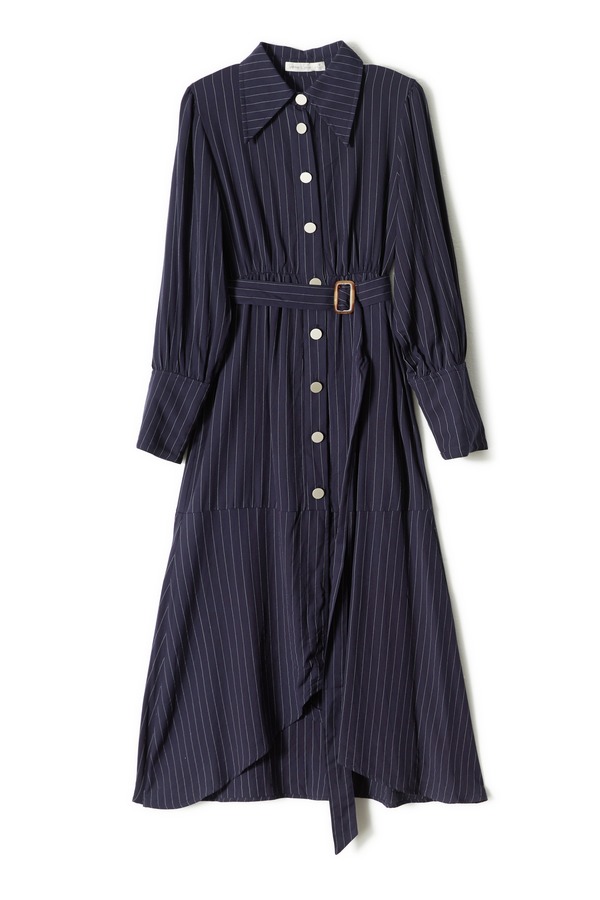 SUMMER & SAGE 条纹束腰长款连衣裙 6223