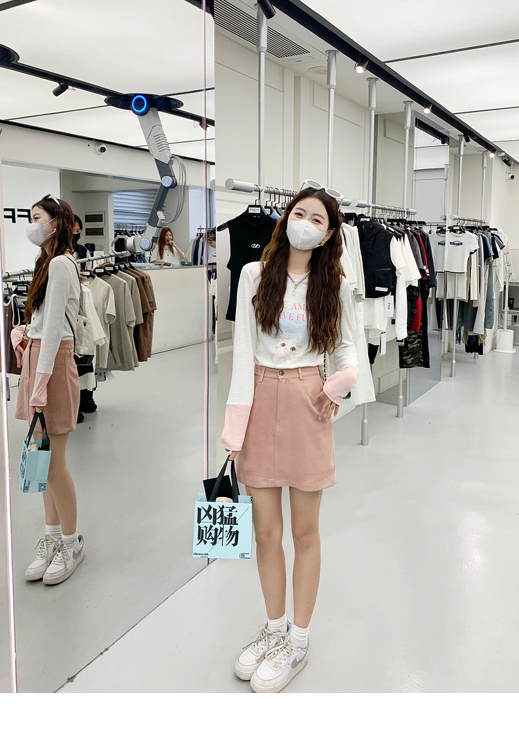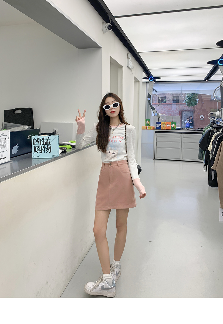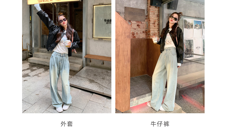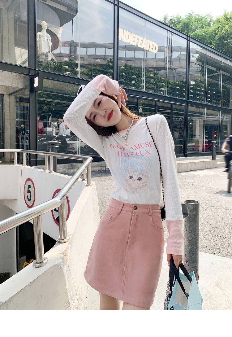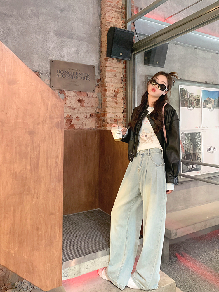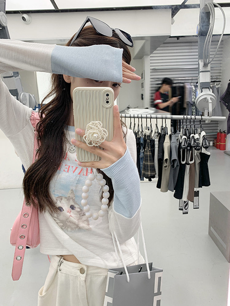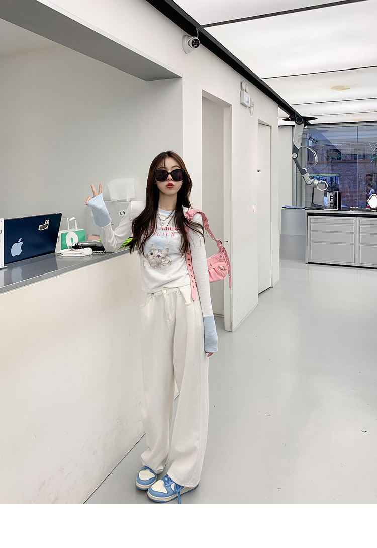 <曾小咸推荐>【梦幻萌宠】猫咪印花长袖T恤/收扣白色牛仔裤