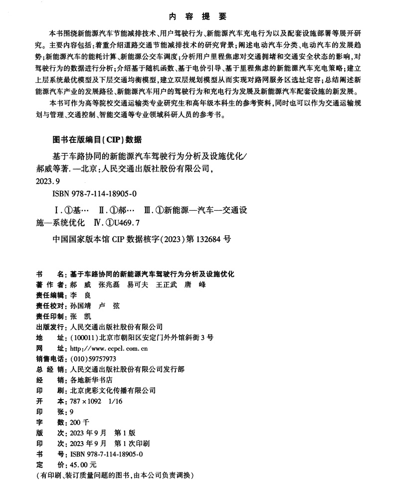 书名:基于车路协同的新能源汽车驾驶行为分析及设施优化