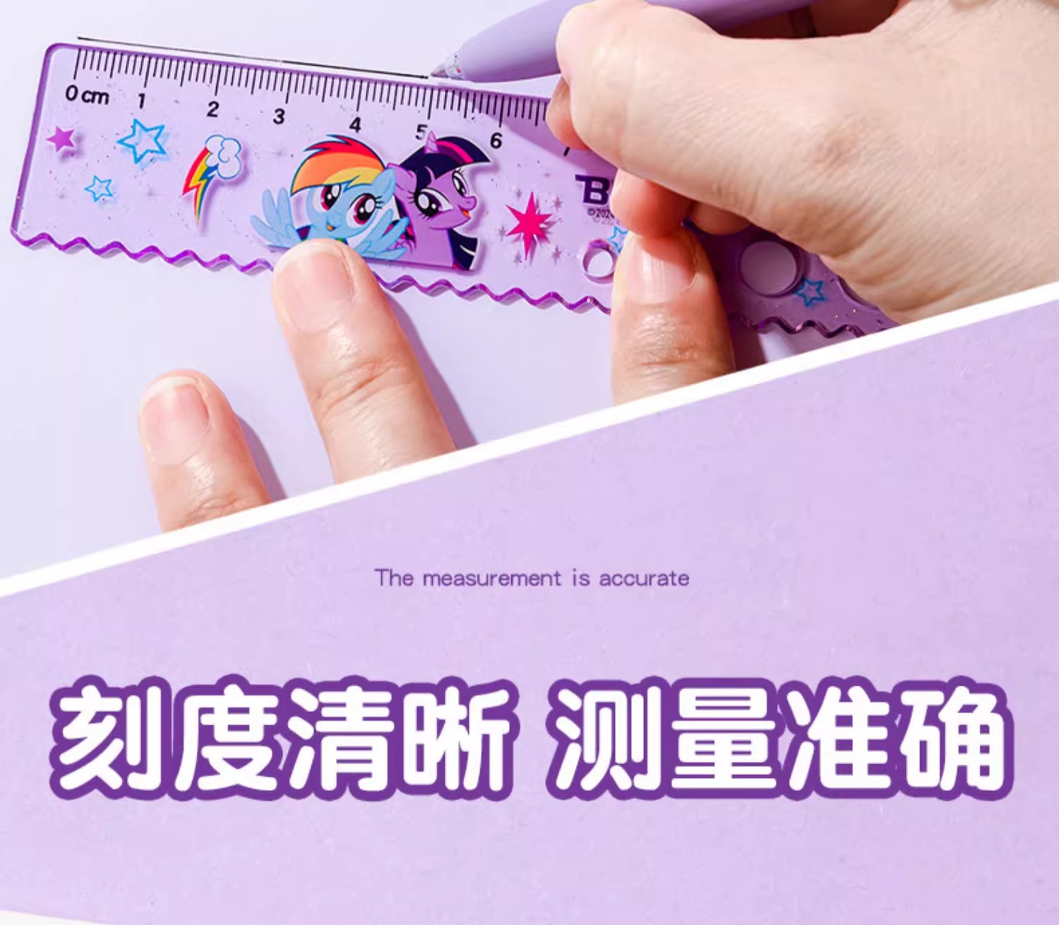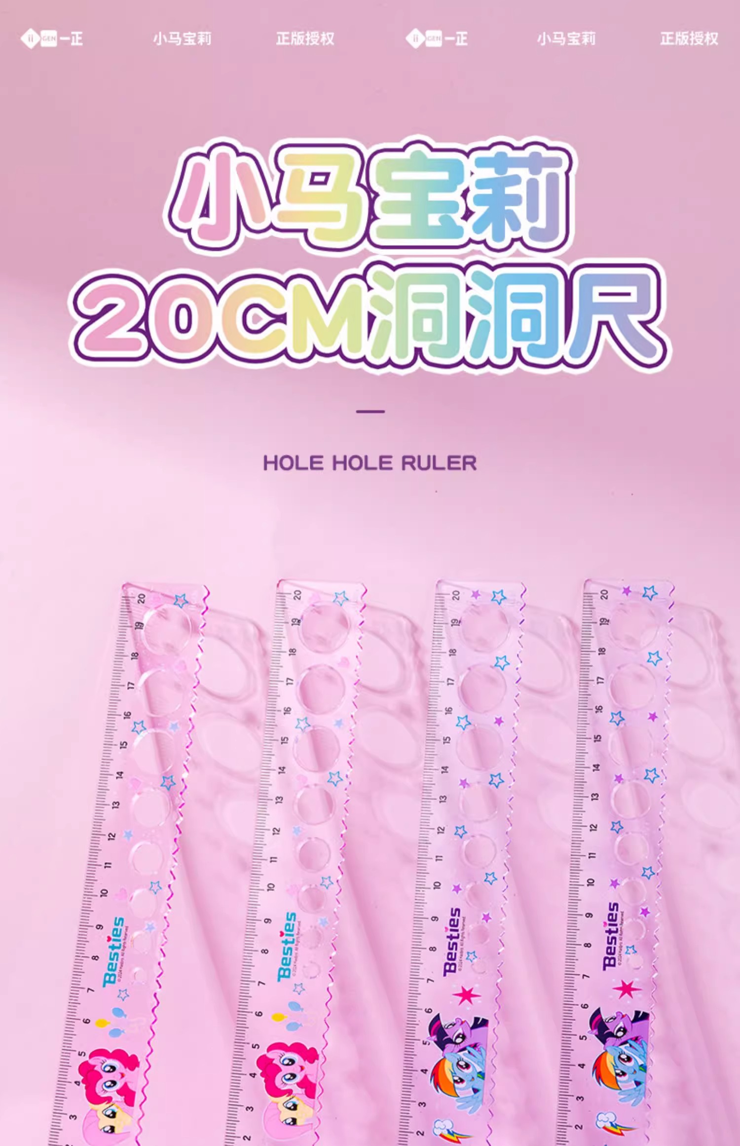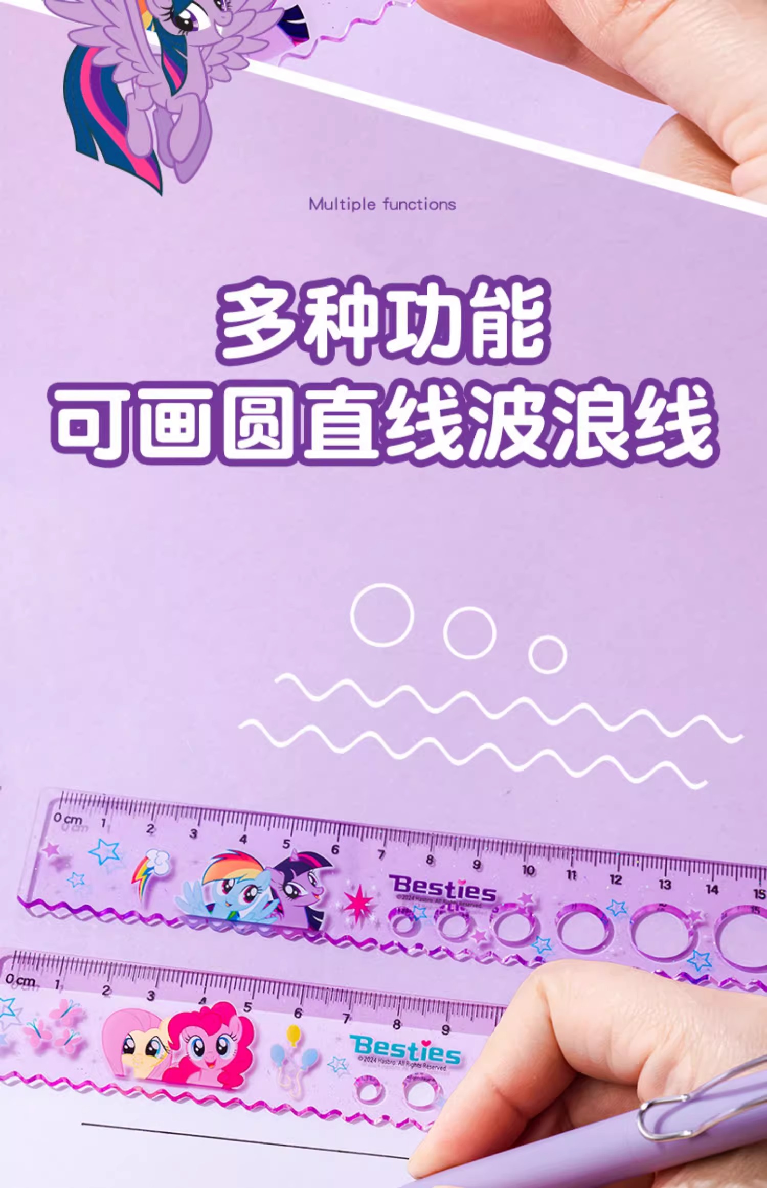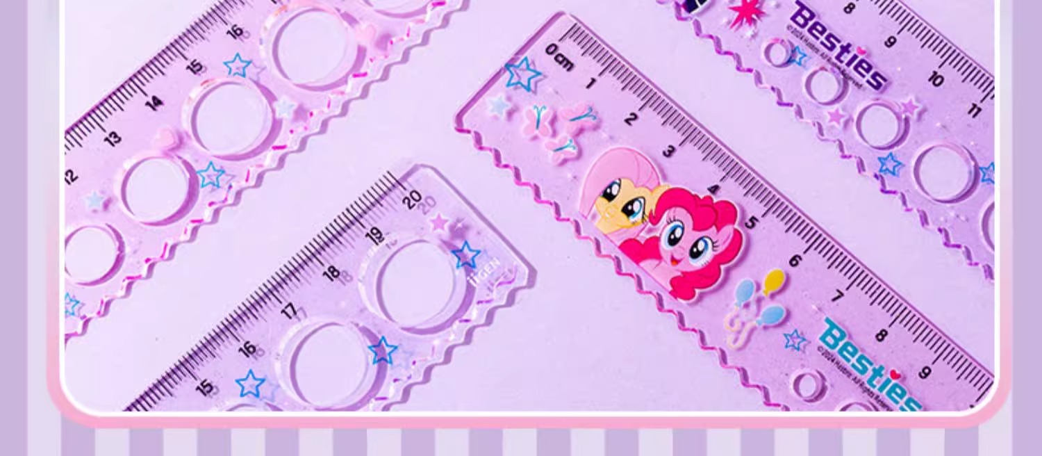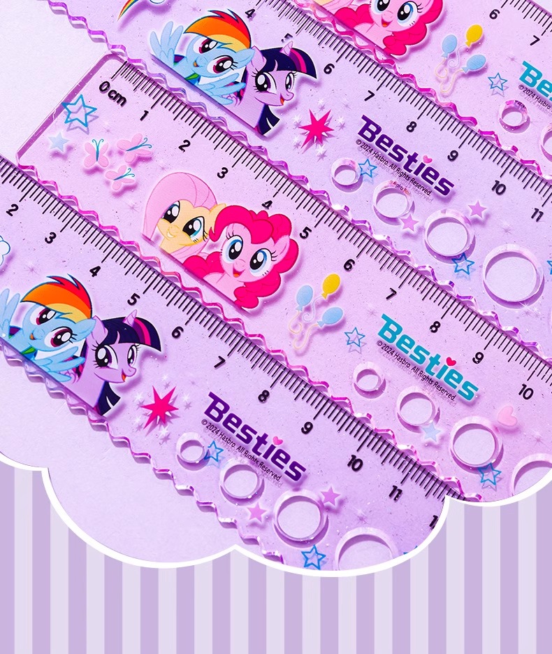 正版小马宝莉20cm圆洞洞尺子少女心直尺小学生绘图波浪尺多功能尺(图案随机)