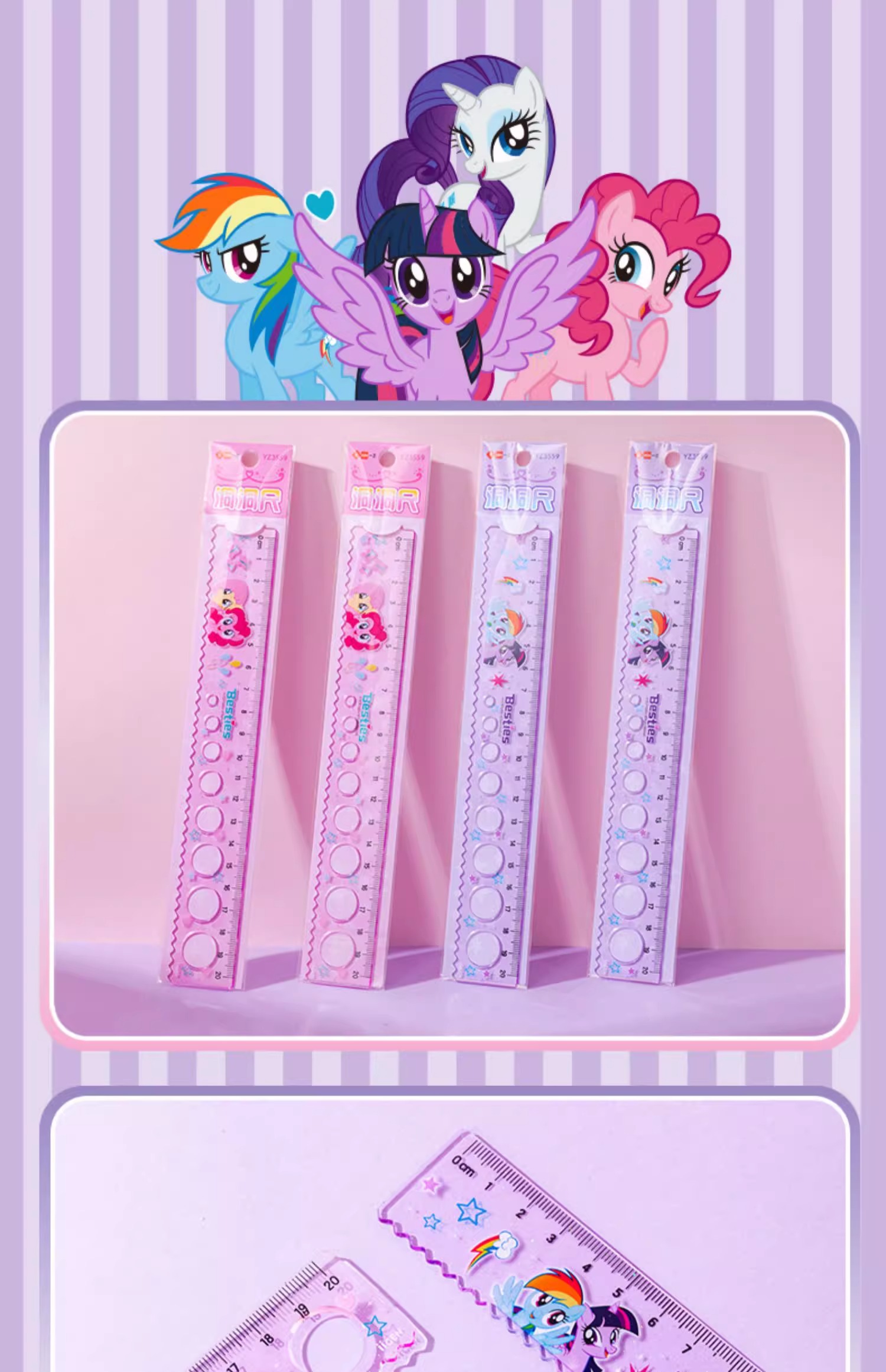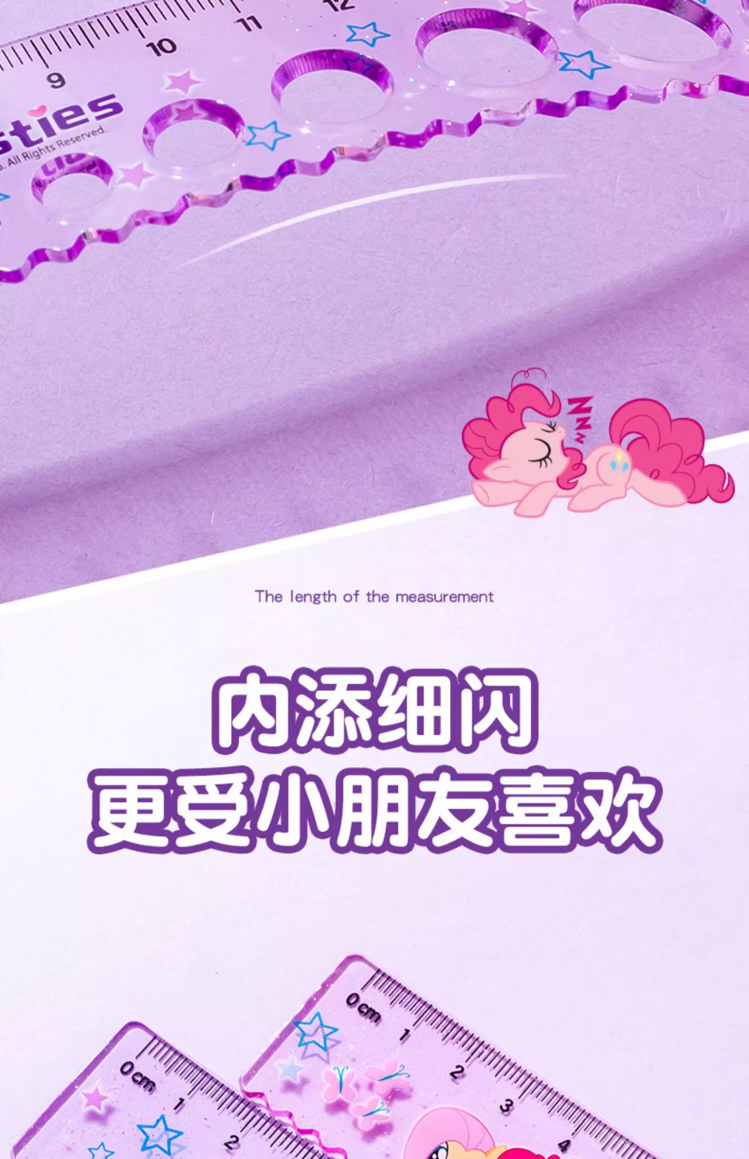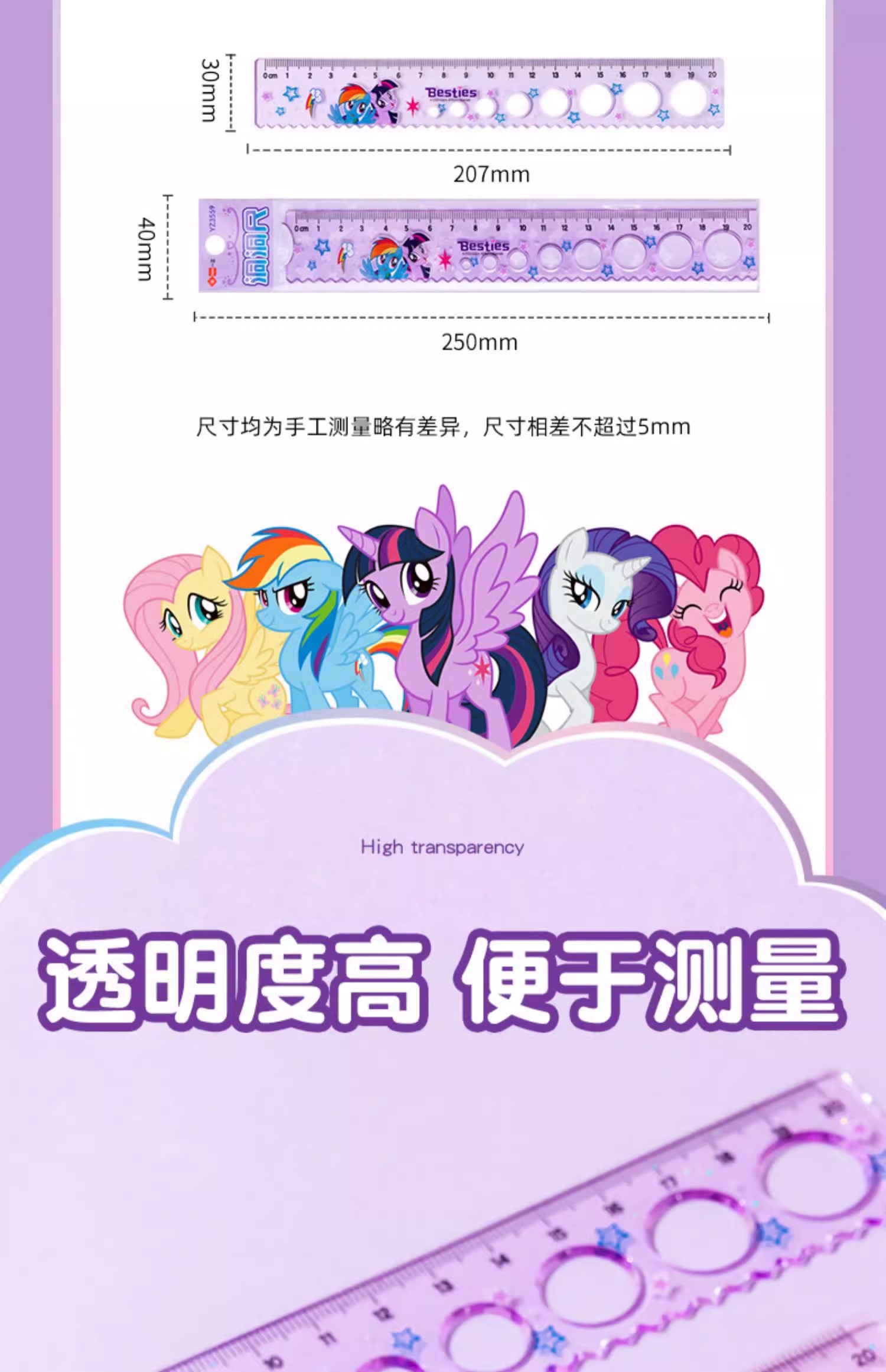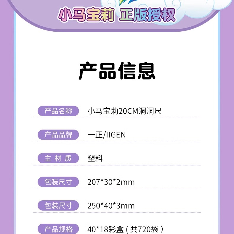 正版小马宝莉20cm圆洞洞尺子少女心直尺小学生绘图波浪尺多功能尺(图案随机)