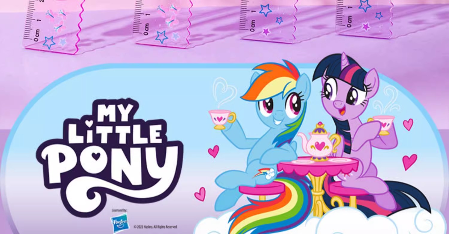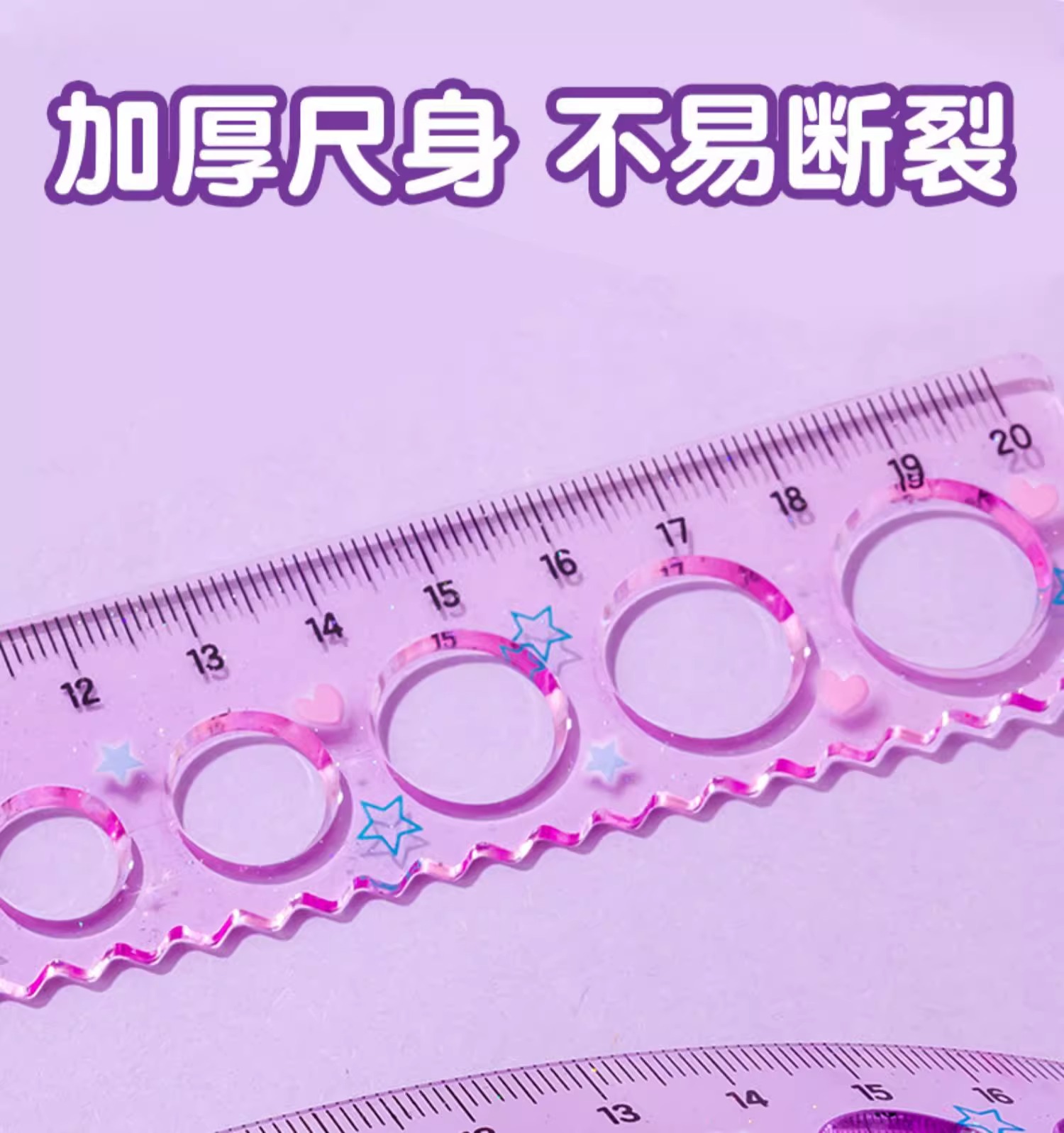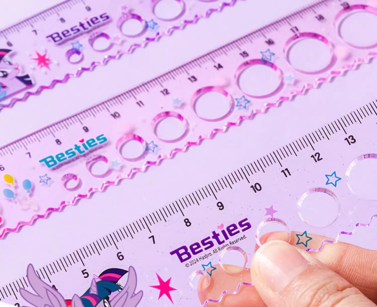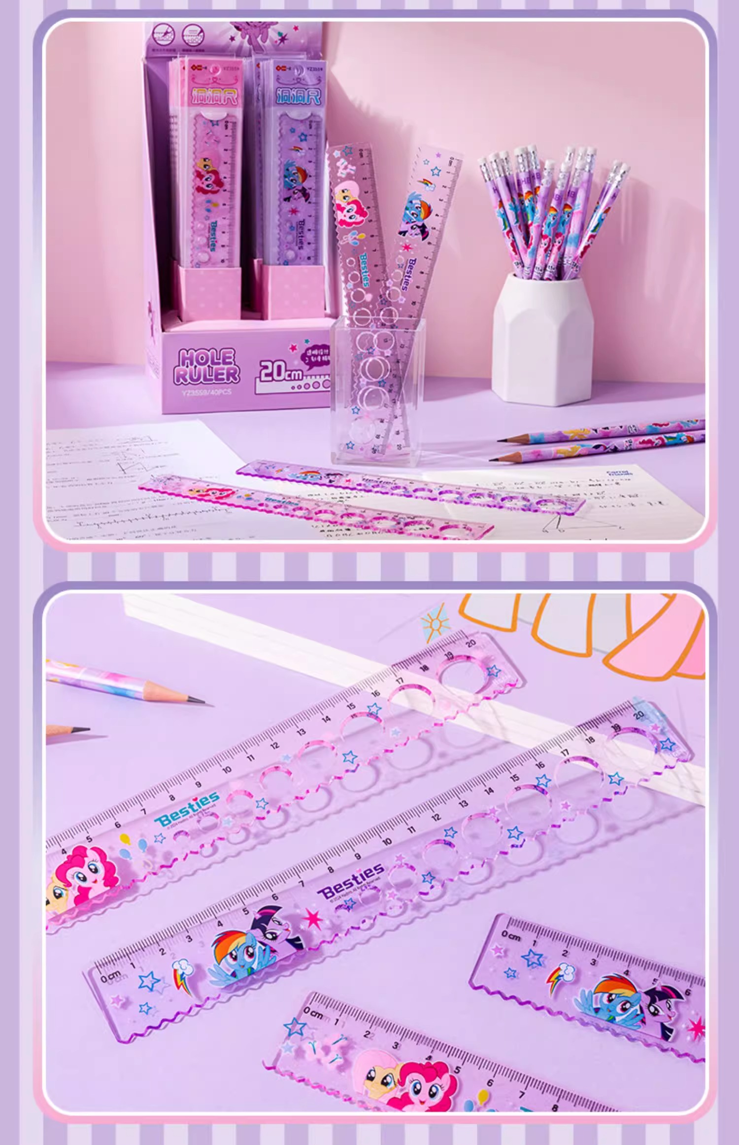 正版小马宝莉20cm圆洞洞尺子少女心直尺小学生绘图波浪尺多功能尺(图案随机)