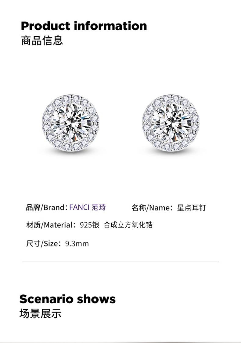 FANCI范琦星点系列圆形耳钉女925银耳环耳饰