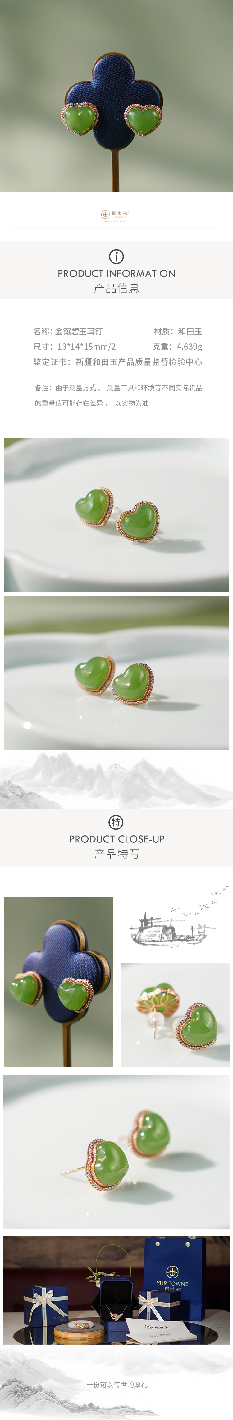 「慕妍」金镶碧玉耳钉