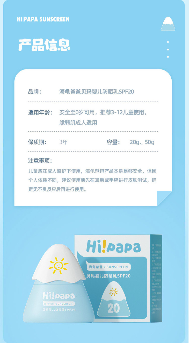 海龟爸爸婴童纯物理防晒乳40g(小雪山)