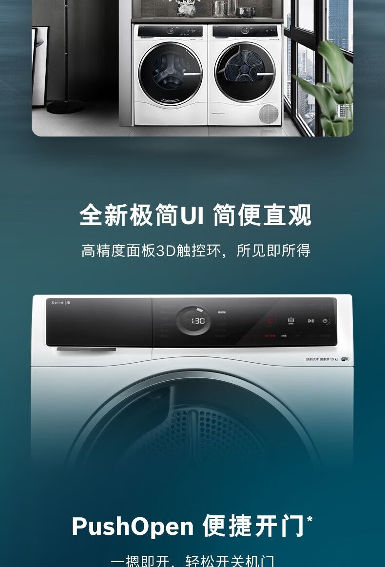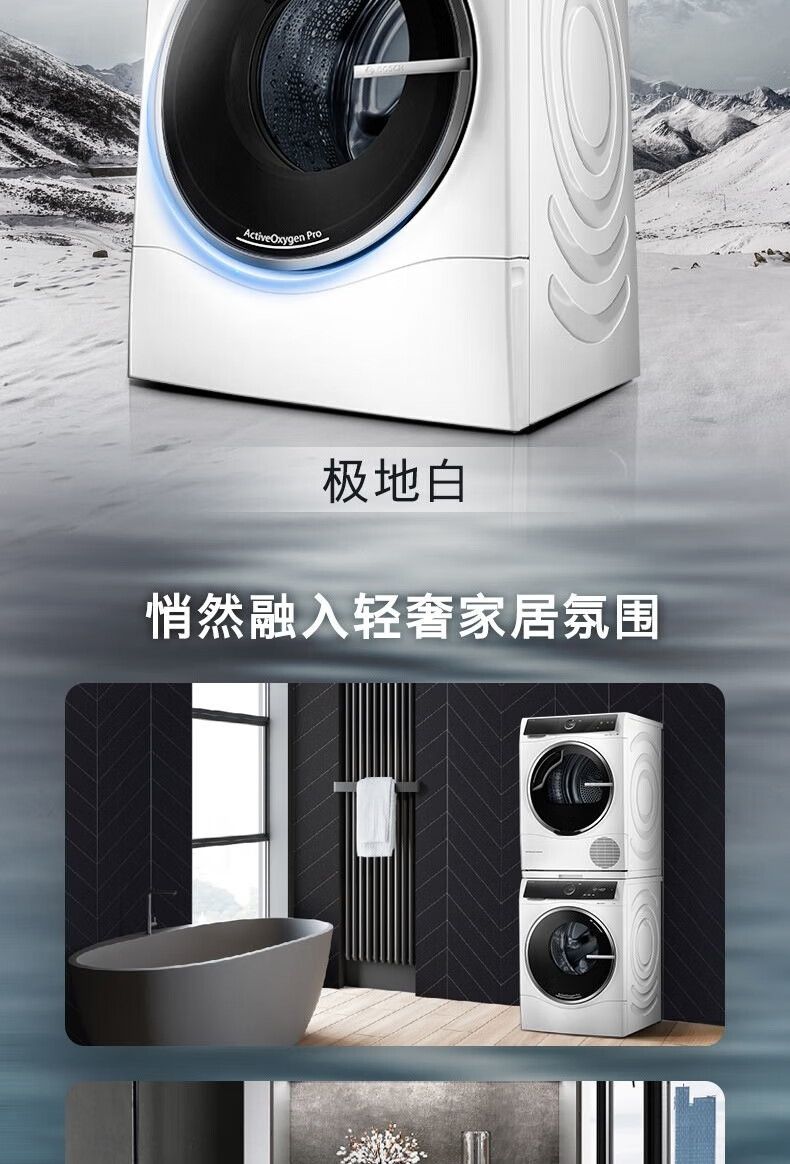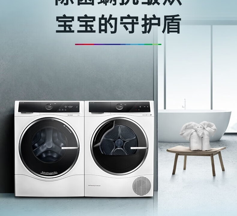博世(BOSCH)6系洗烘套装10+10KG活氧空气洗除皱祛味自动投放 羊毛除菌烘 蚕丝被精护冷凝器自清洁 WGC554C00W+WQC355C01W