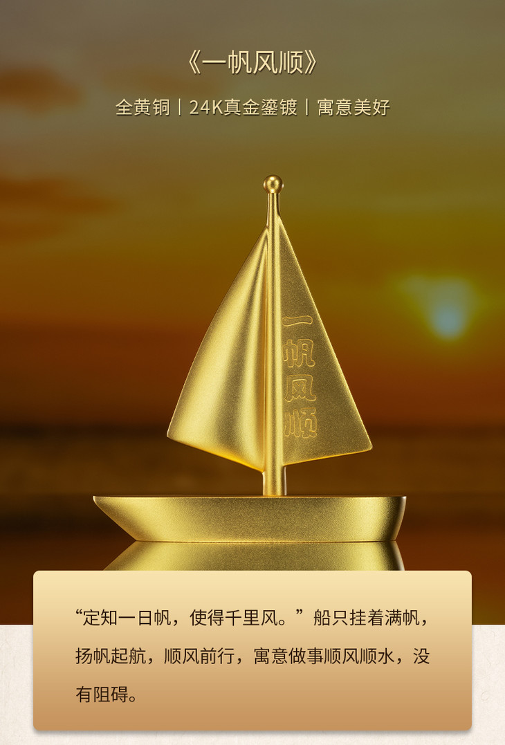 铜师傅 全铜摆件《一帆风顺》铜工艺品 办公室客厅桌面家居饰品