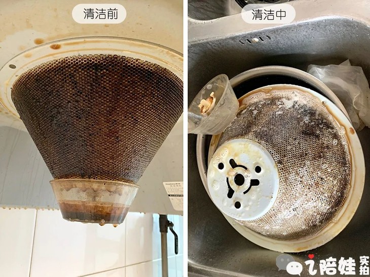 我还有个闺蜜会定期清洁油烟机,她家属于油污不怎么大的,但仍旧能看到滤网里有很多油流出来。