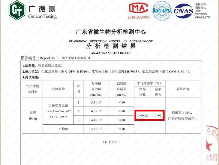 另外,它也有对微生物分析的检测报告,给妞们看下