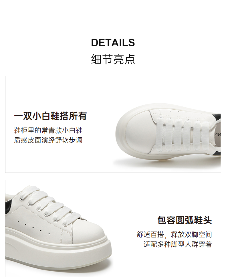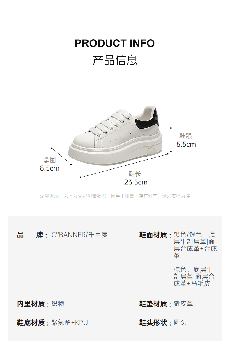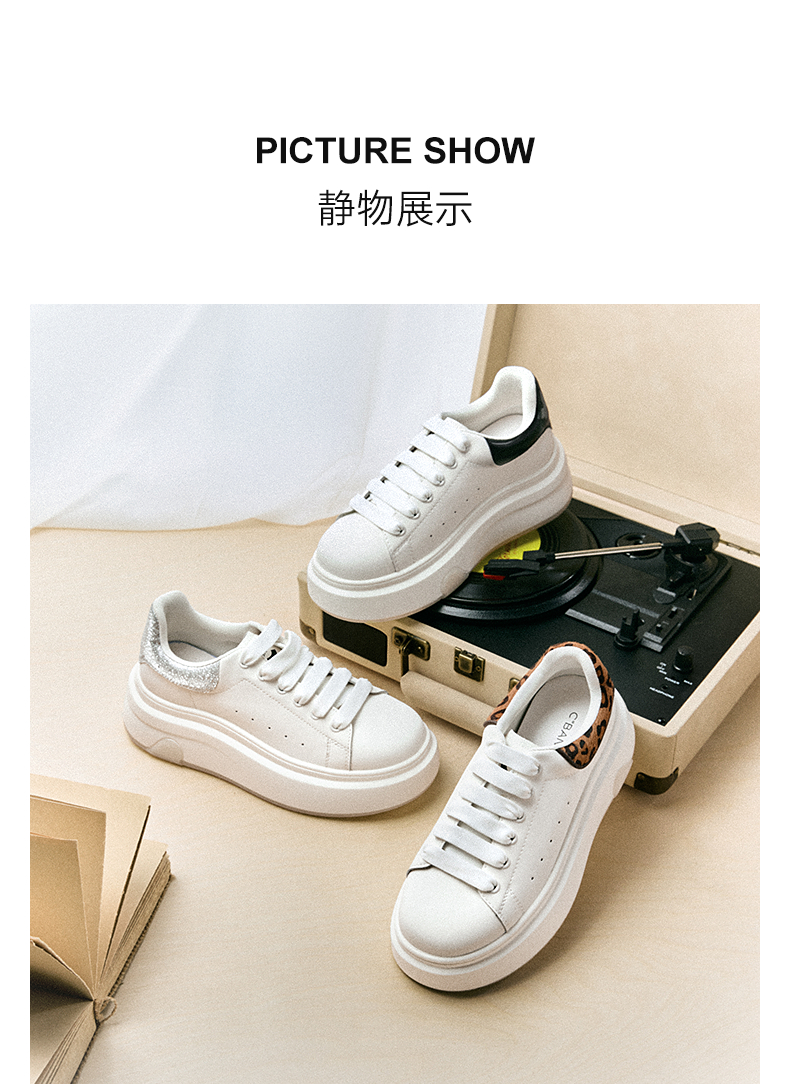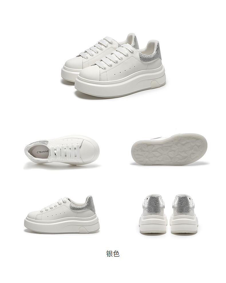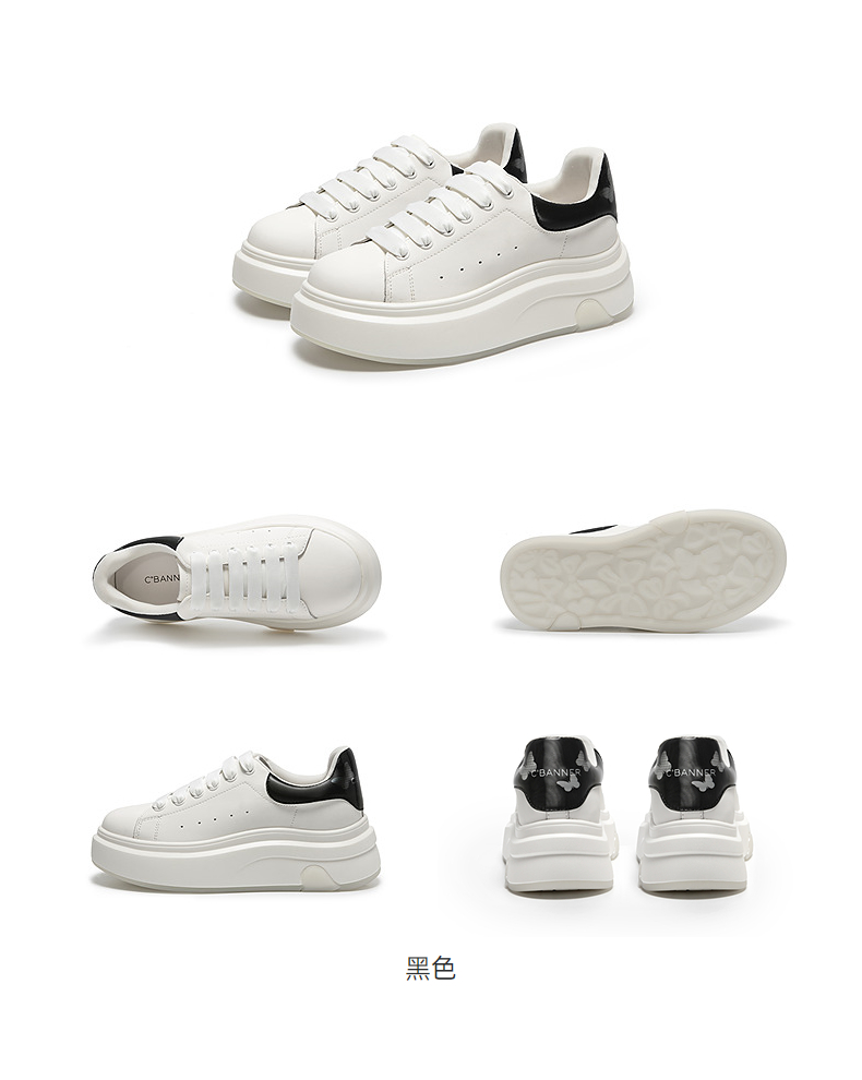千百度厚底轻便小白鞋女款增高休闲板鞋透气运动鞋A25470663