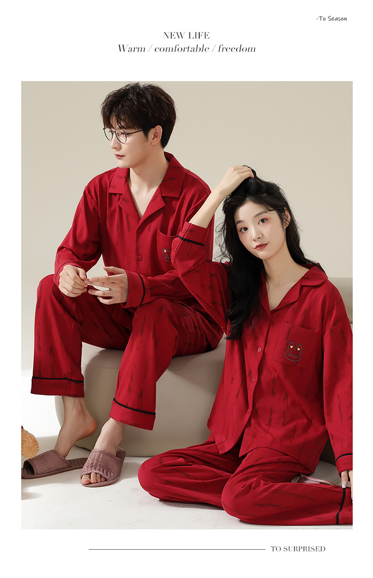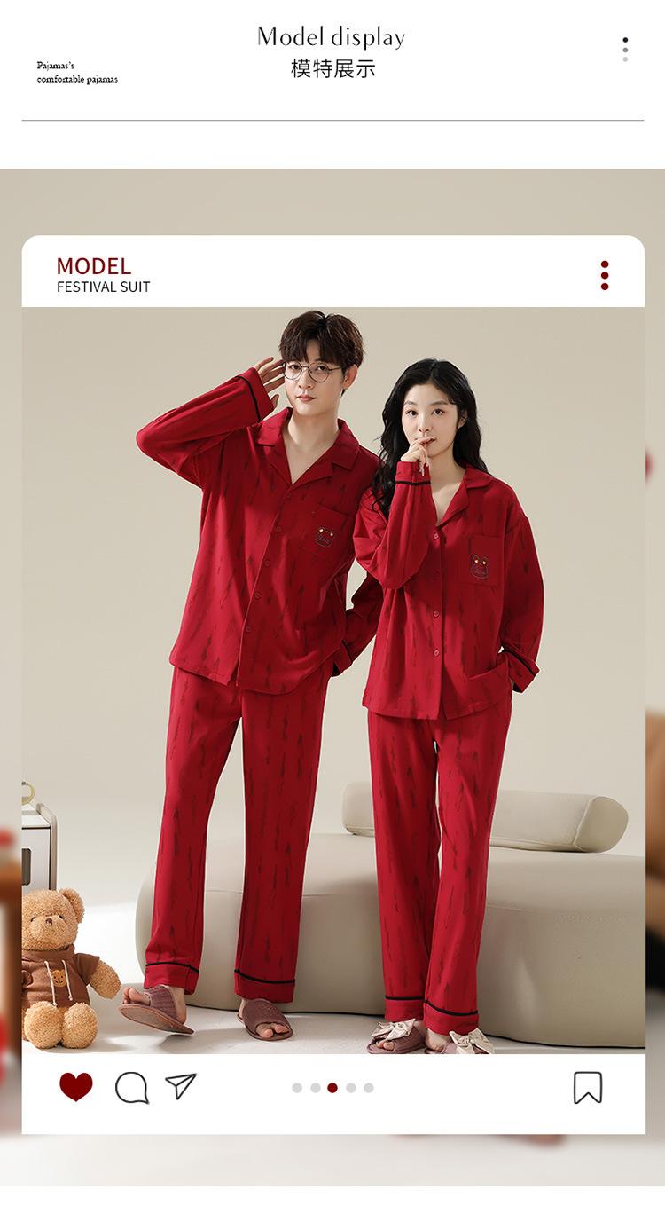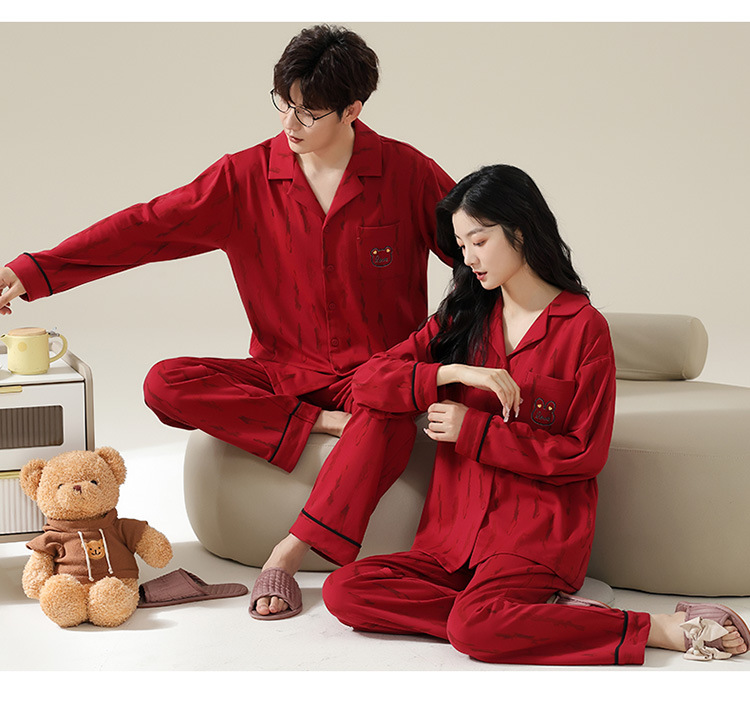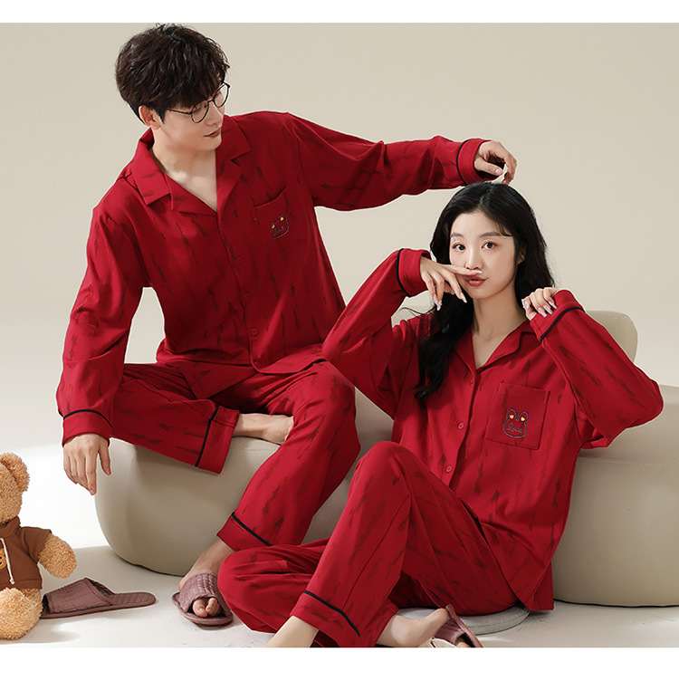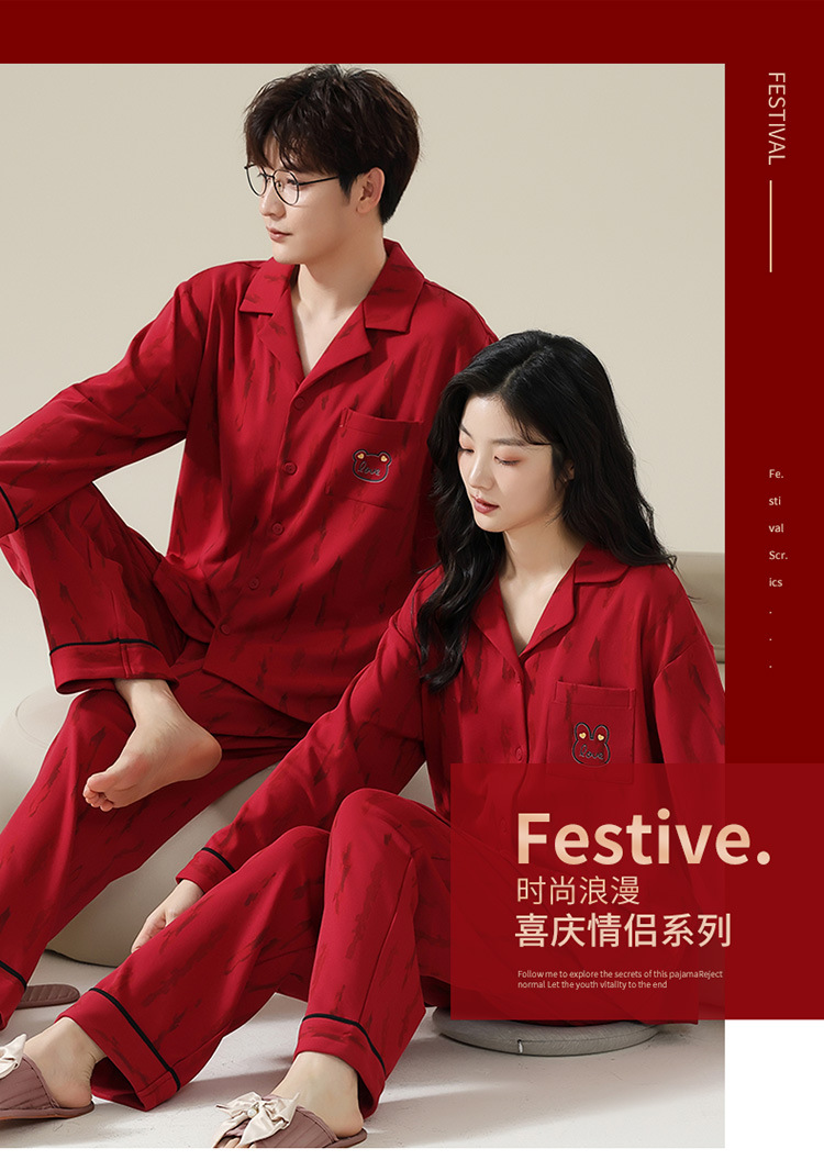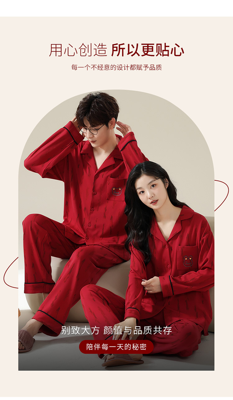 新款本命年情侣睡衣春秋季长袖男士开衫女士新婚喜庆可外穿家居服