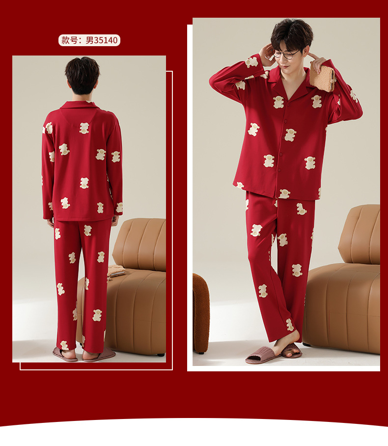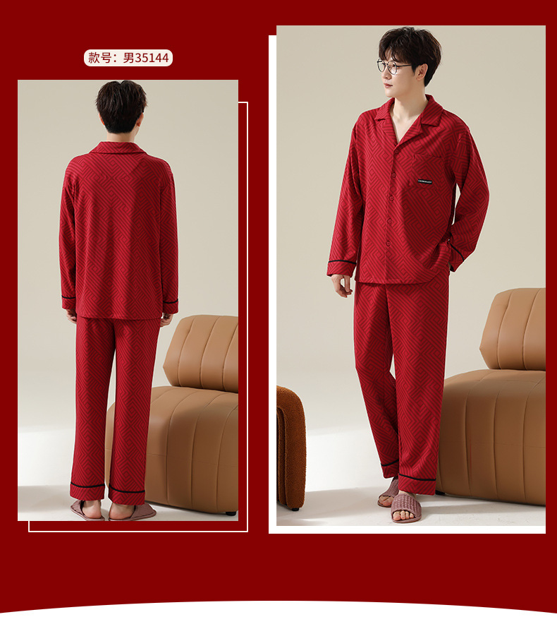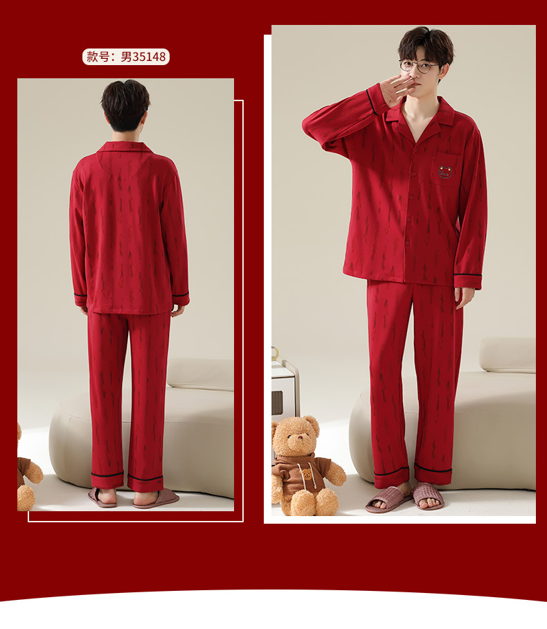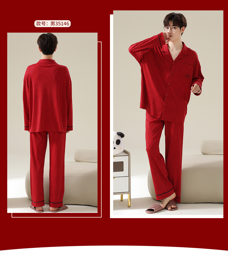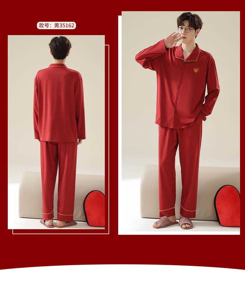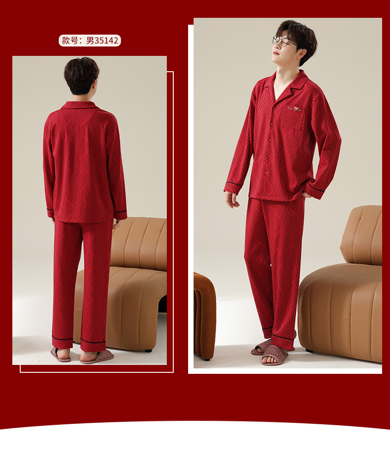 新款本命年情侣睡衣春秋季长袖男士开衫女士新婚喜庆可外穿家居服