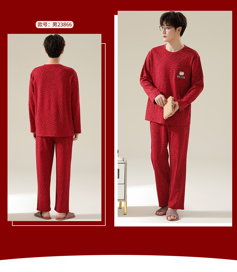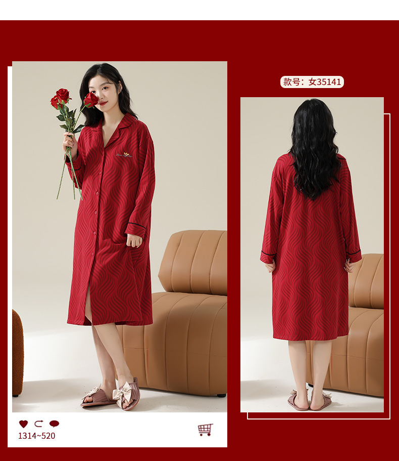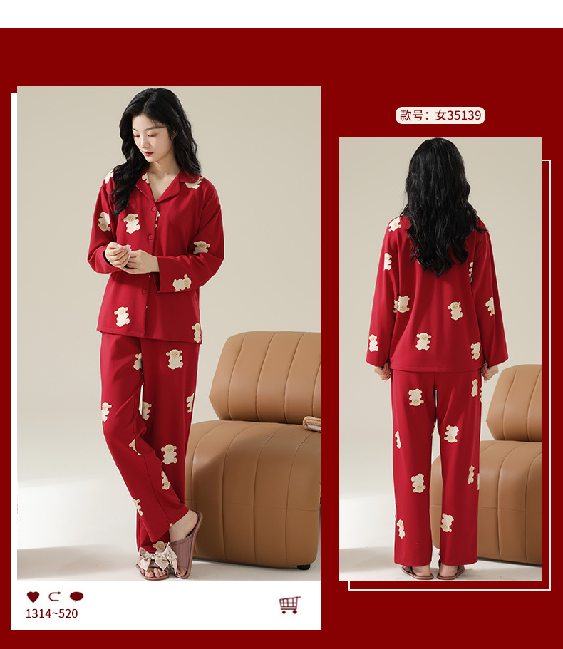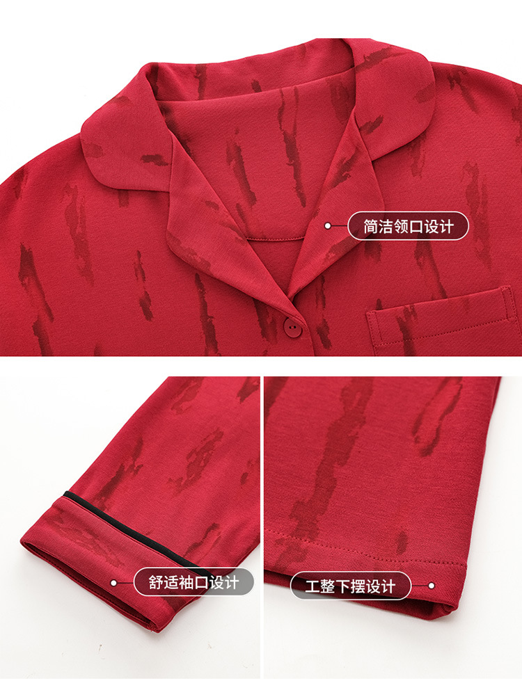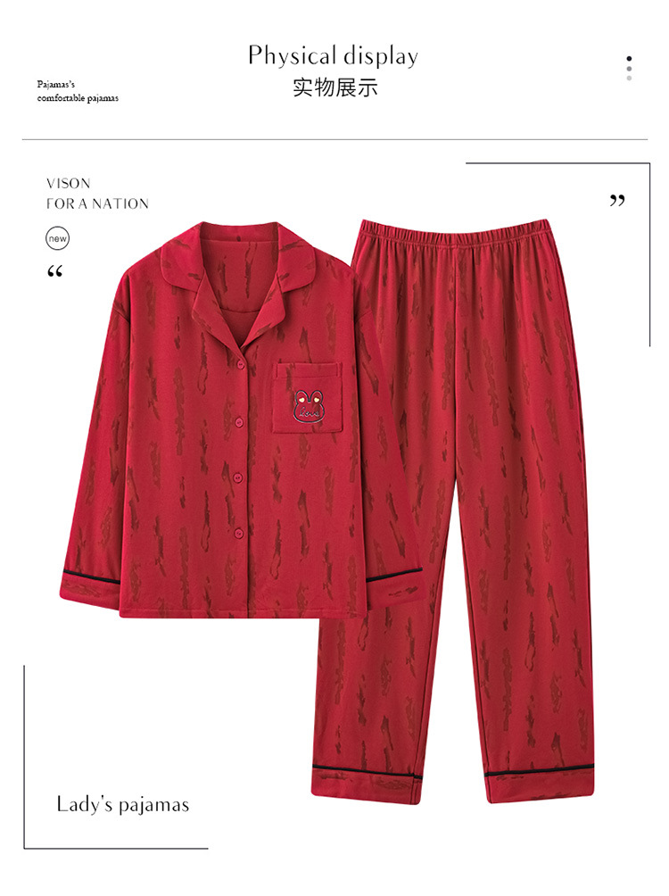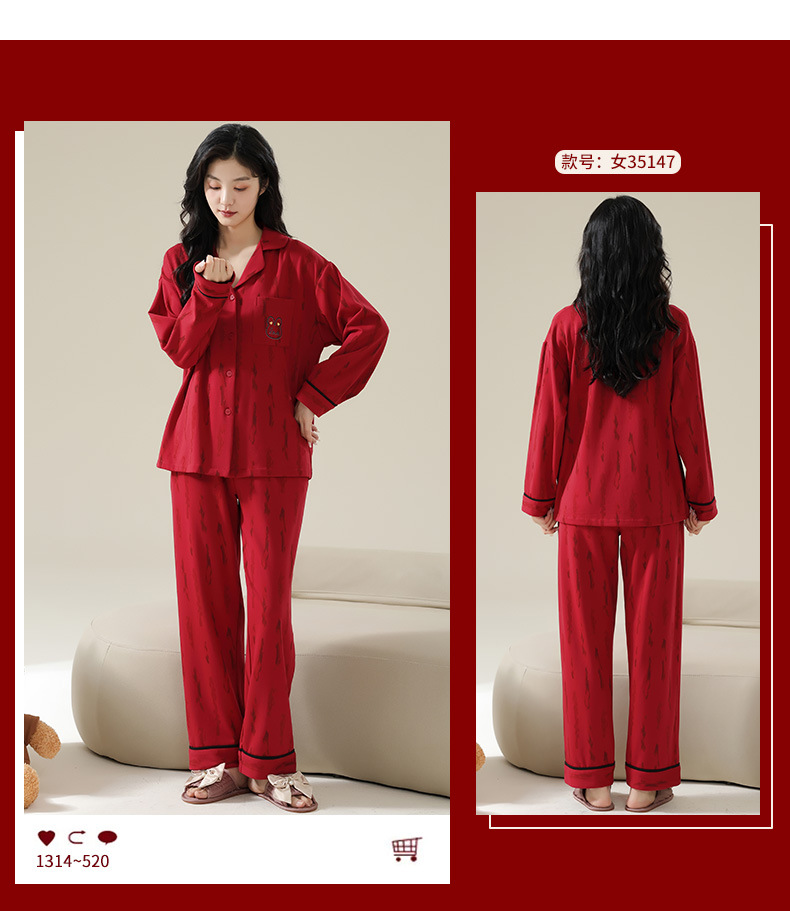 新款本命年情侣睡衣春秋季长袖男士开衫女士新婚喜庆可外穿家居服