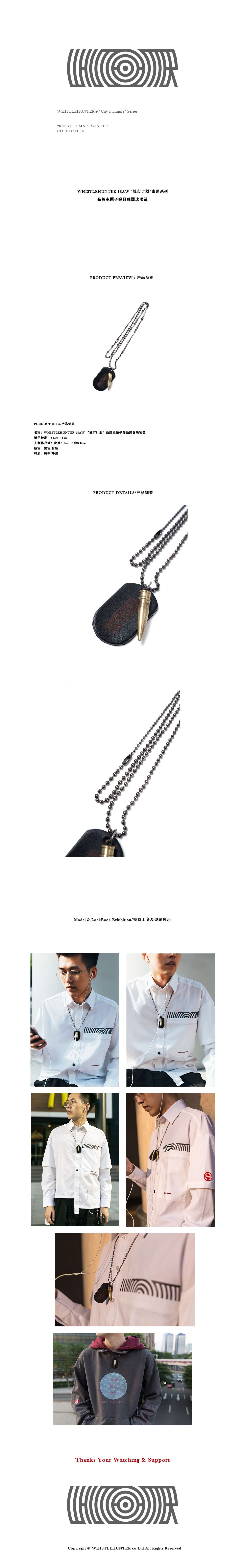 WHISTLEHUNTER 2018AW 潮流圆珠链个性子弹皮牌logo可调节长项链