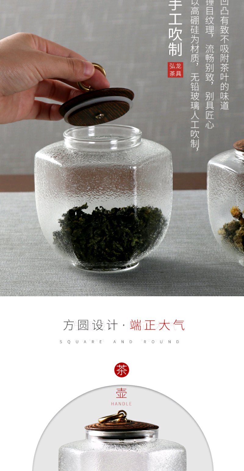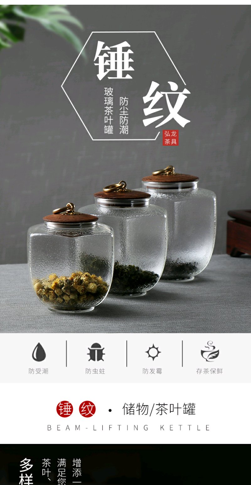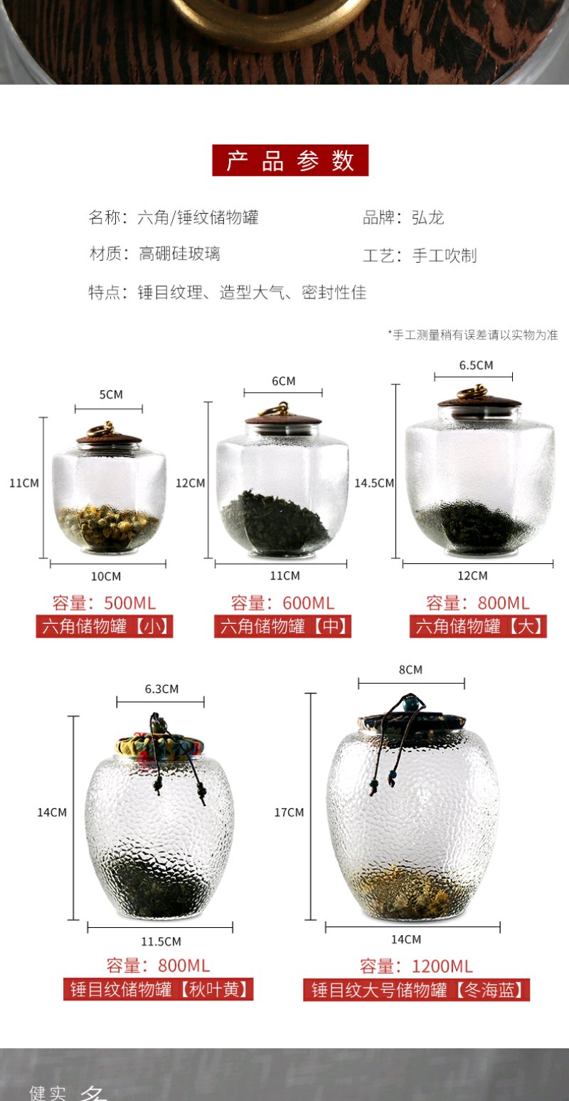 弘龙 六角储物罐 锤目纹储物罐 茶罐茶叶罐花茶罐密封罐装茶叶储存罐