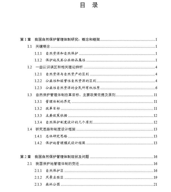 本书系统梳理中国自然保护现有管理体制,在借鉴美国自然保护管理体制发展经验的基础上,分析中国自然保护管理制度成因,分析中国自然资源保护及生态功能完整发挥管理体制目标需求,设计自然保护管理体制改革路径,研究比对和情景分析各改革路径的优劣势,给出中国自然保护管理体制改革方向和路径的政策研究建议。