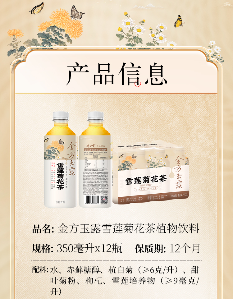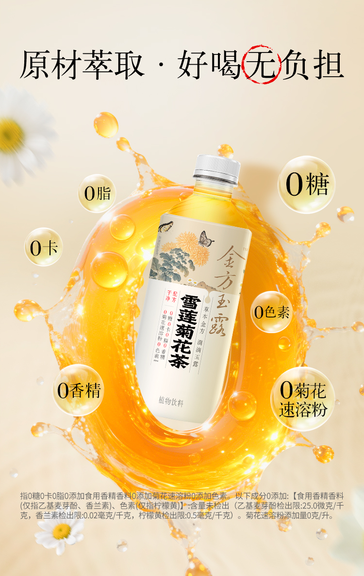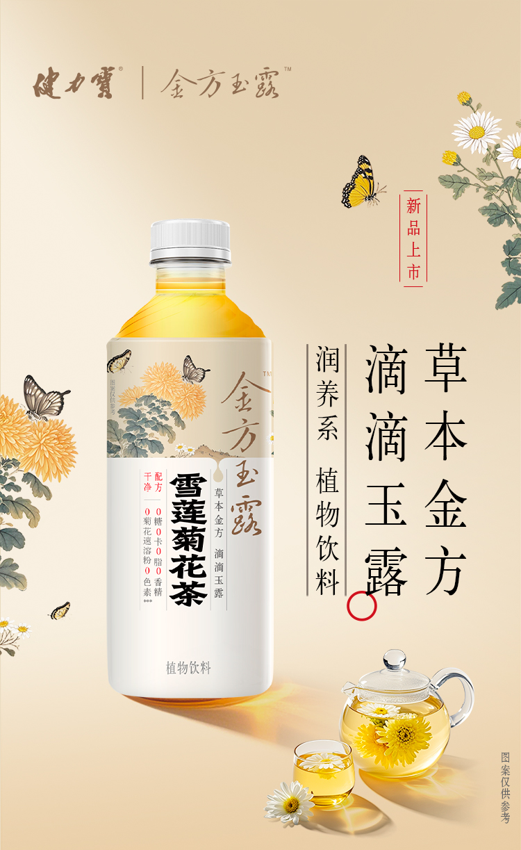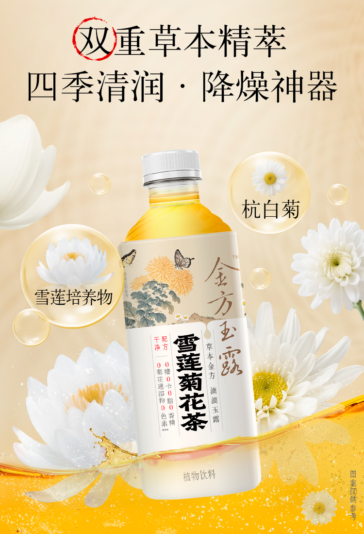 健力宝雪莲菊花茶植物饮料350ml*12瓶装 0糖0脂0卡清润去火茶