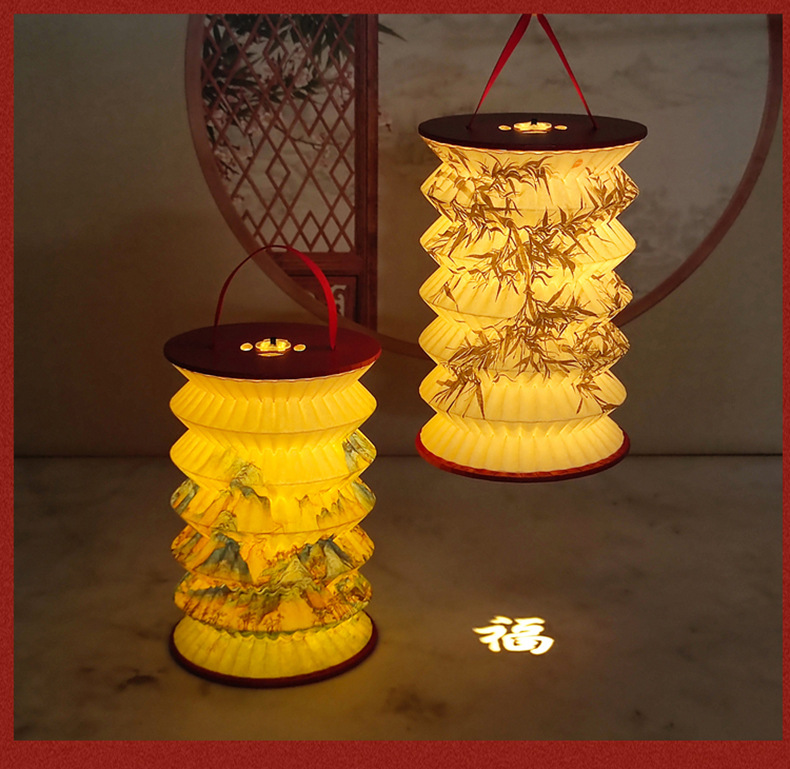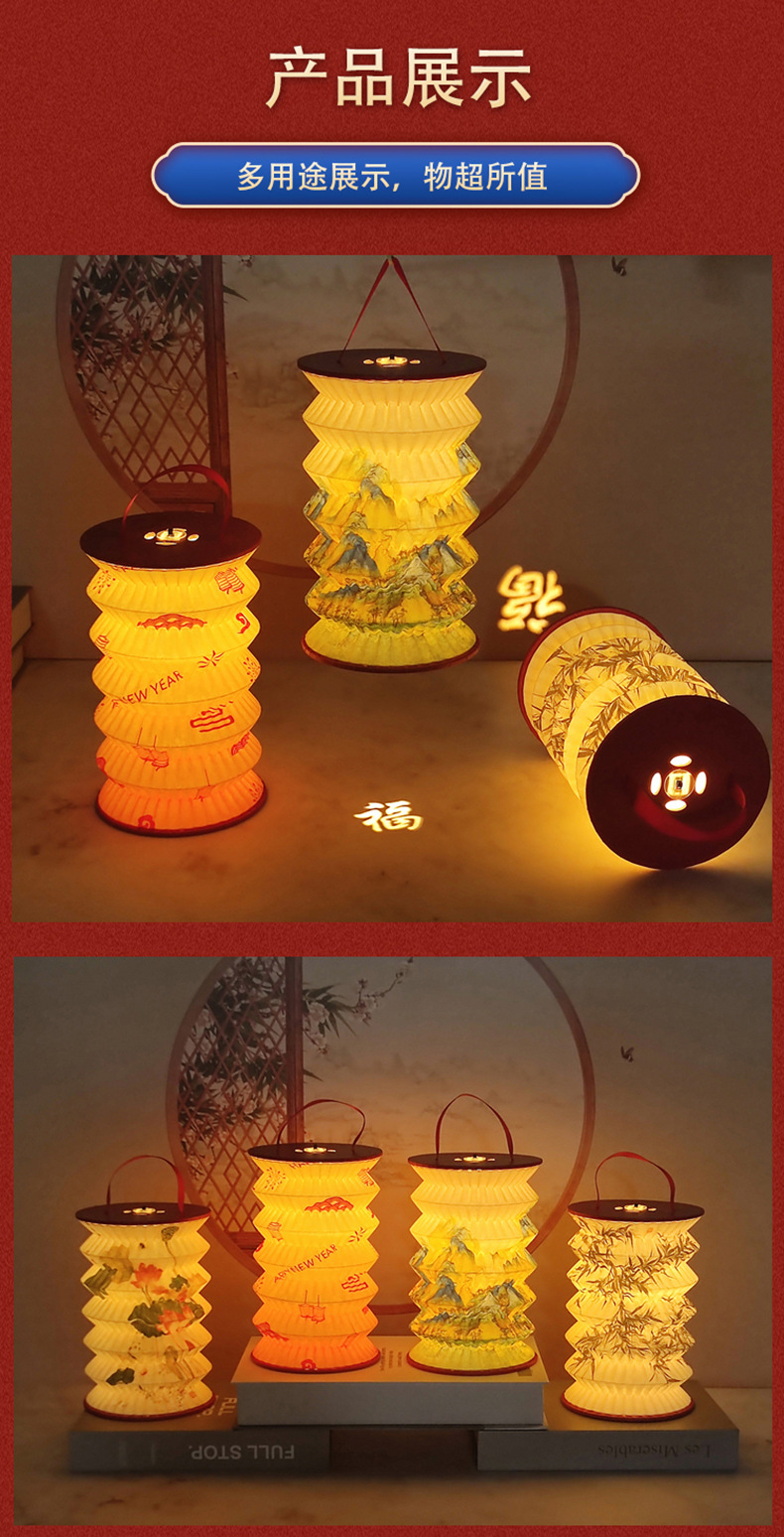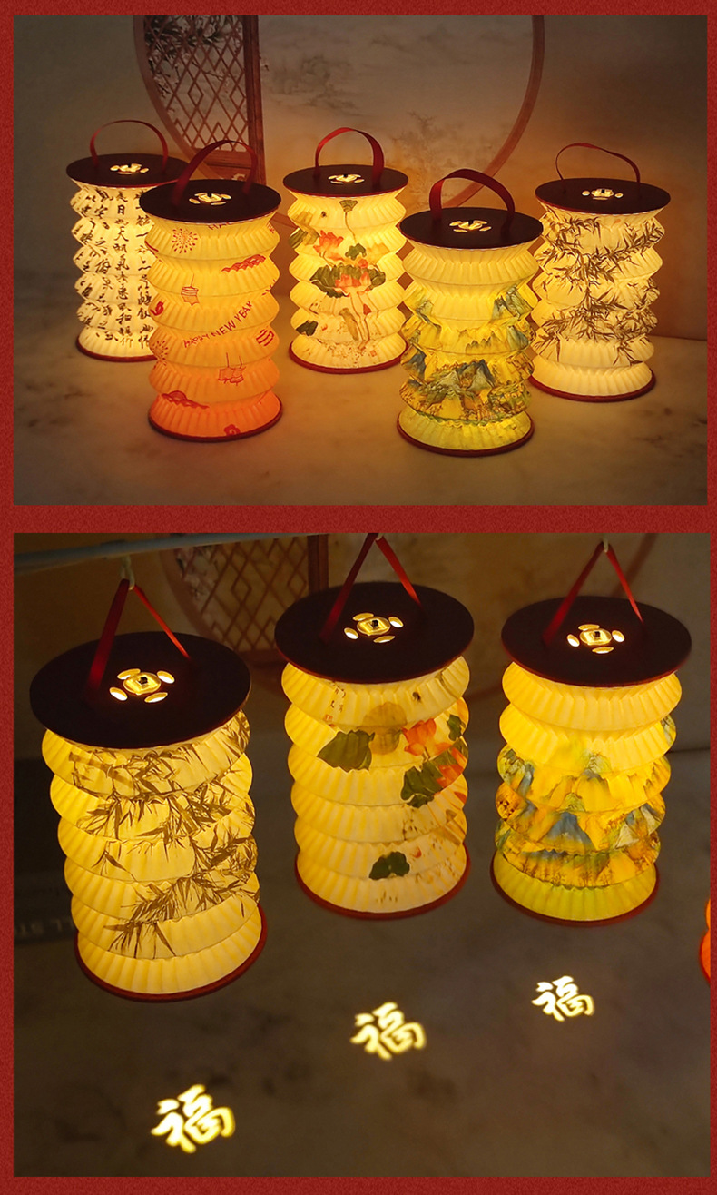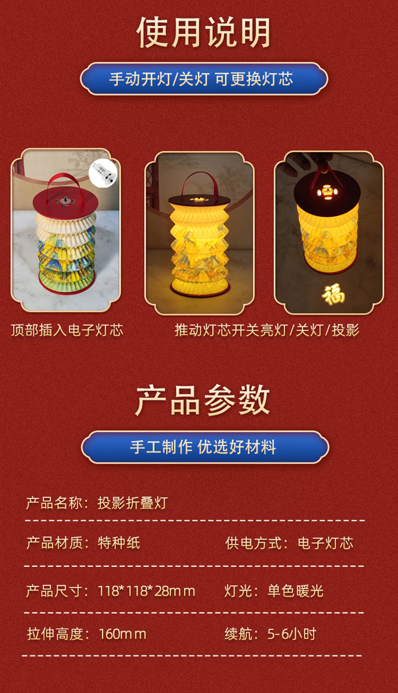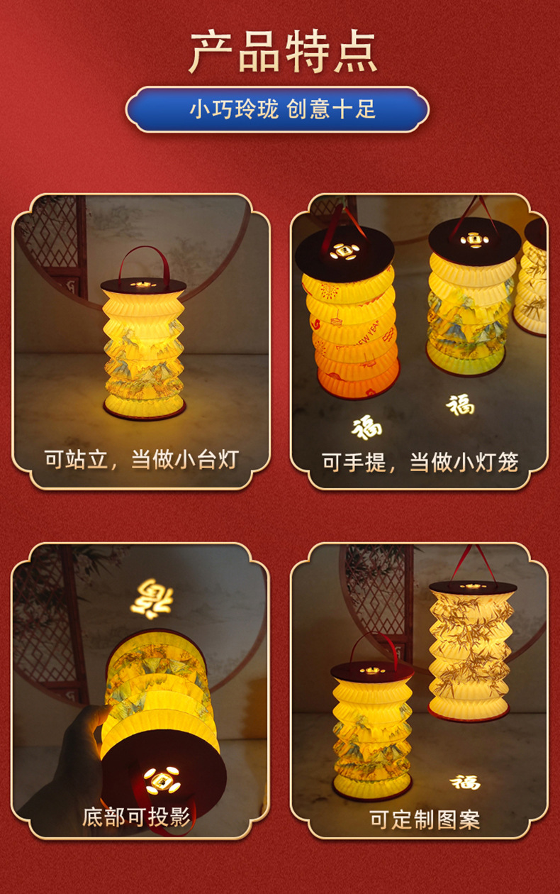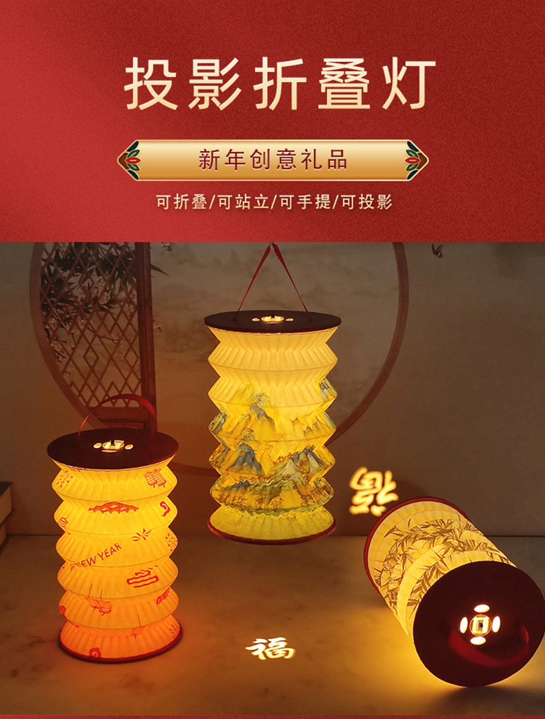 【投影创意古风灯笼】中秋节创意礼品 可提可立可投影 手提发光小灯笼 元宵节投影花灯 新年礼物折叠纸灯笼