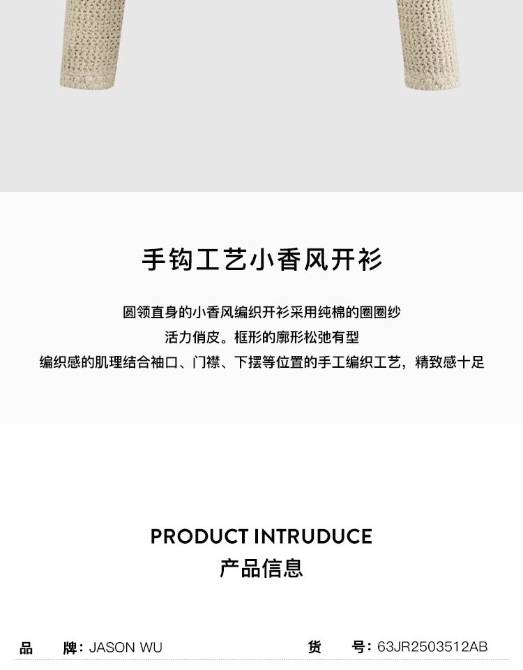 【JASON WU】2025年新款圆领针织开衫手钩工艺设计感高级小香风针织衫