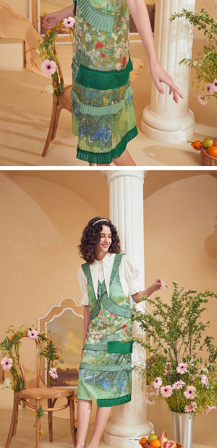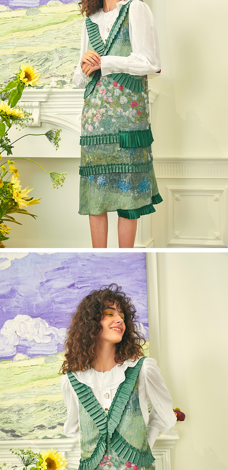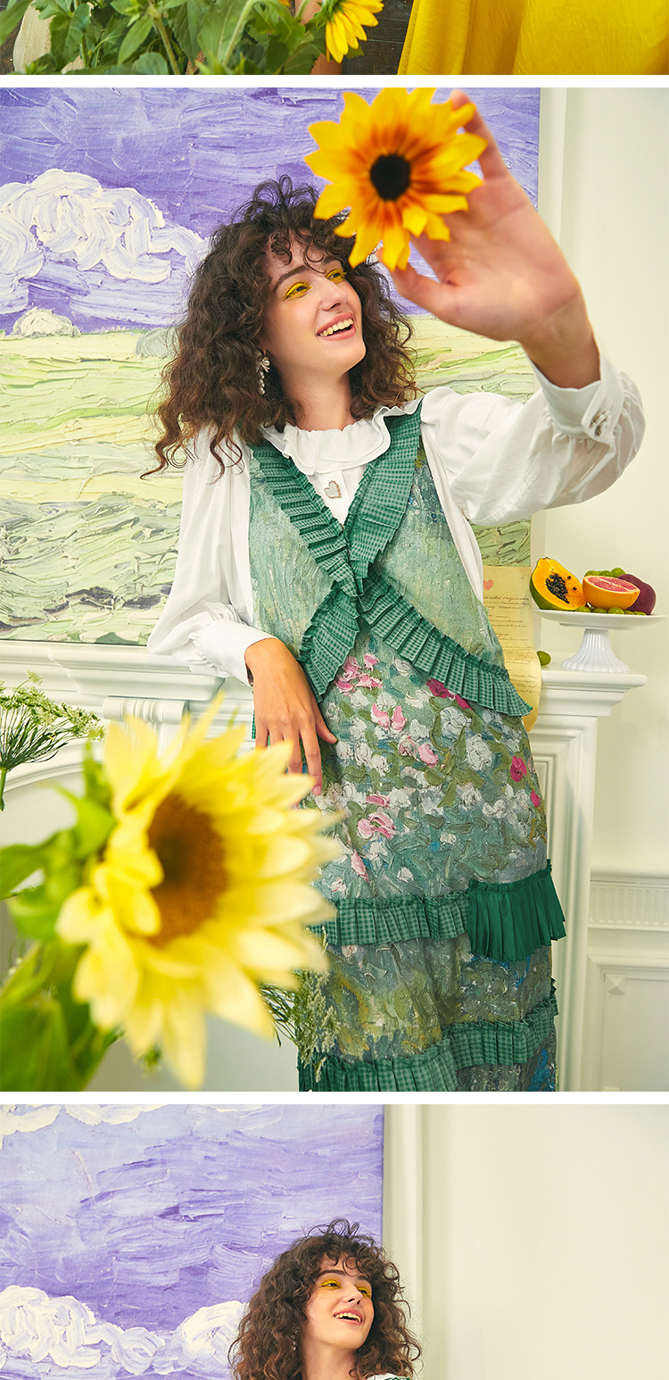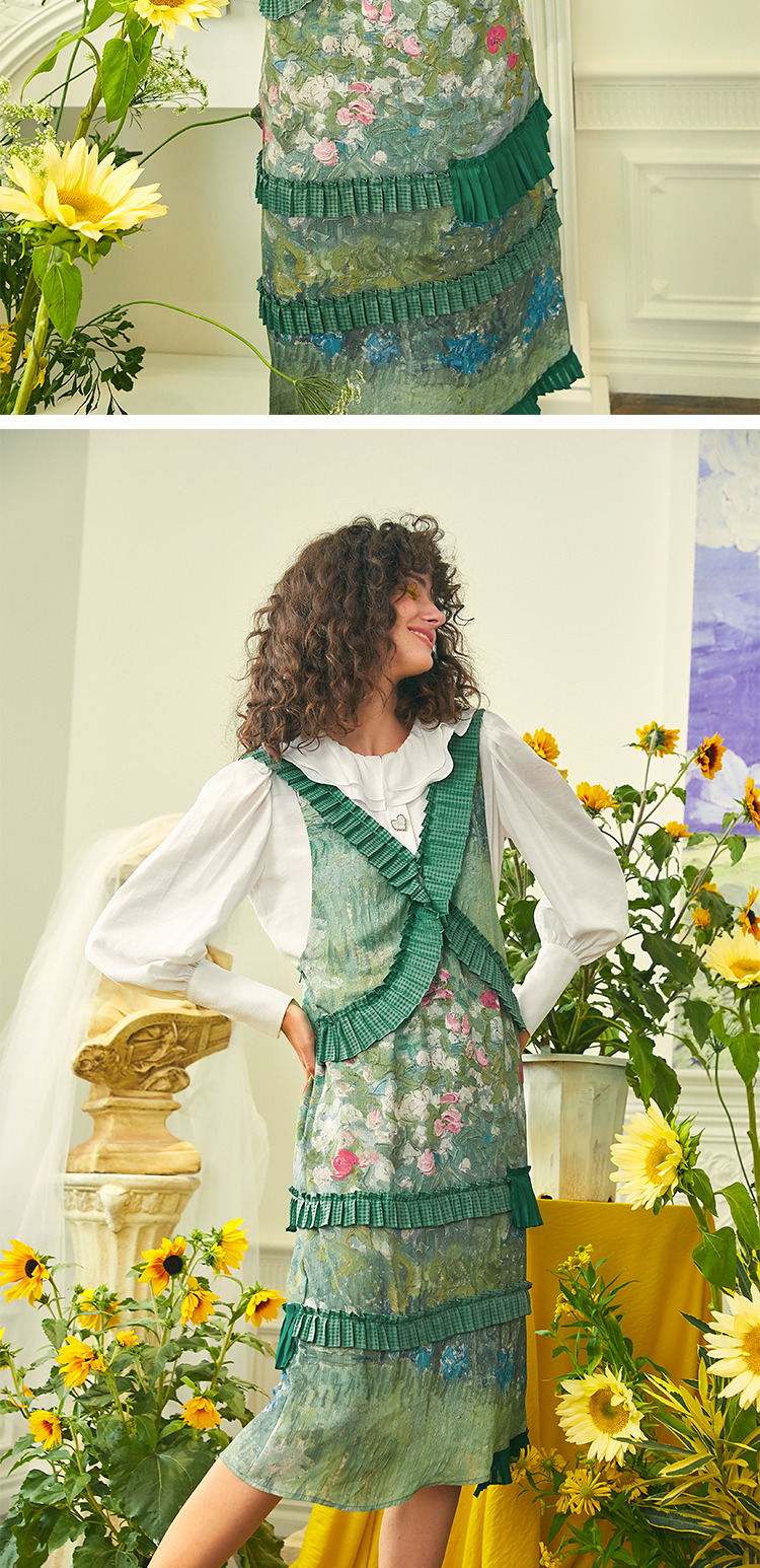 连衣裙 两三事梵高艺术不枉人间春夏新款旅行连衣裙设计感小众碎花裙