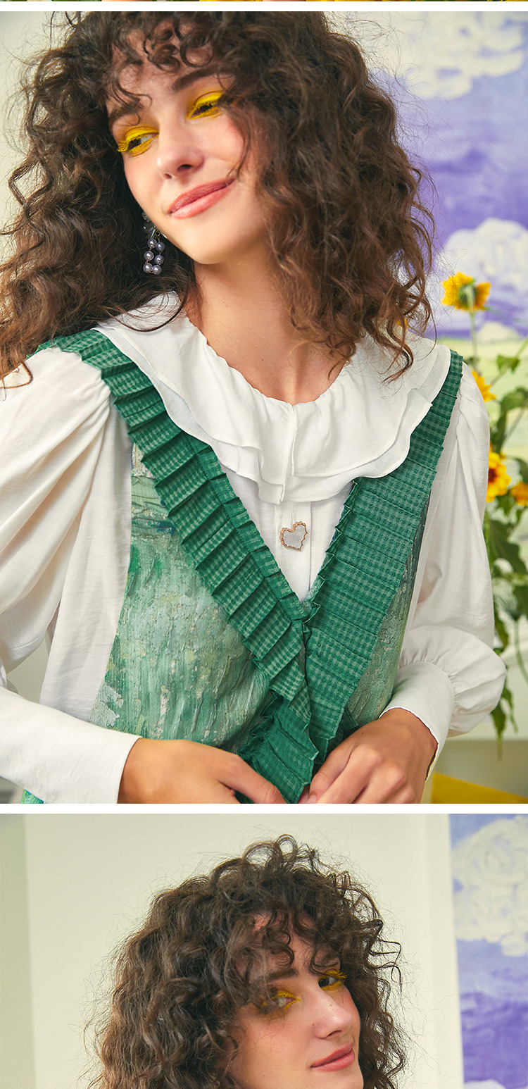 两三事梵高系列静美如秋叶冬新款无袖短款毛衣背心女复古慵懒