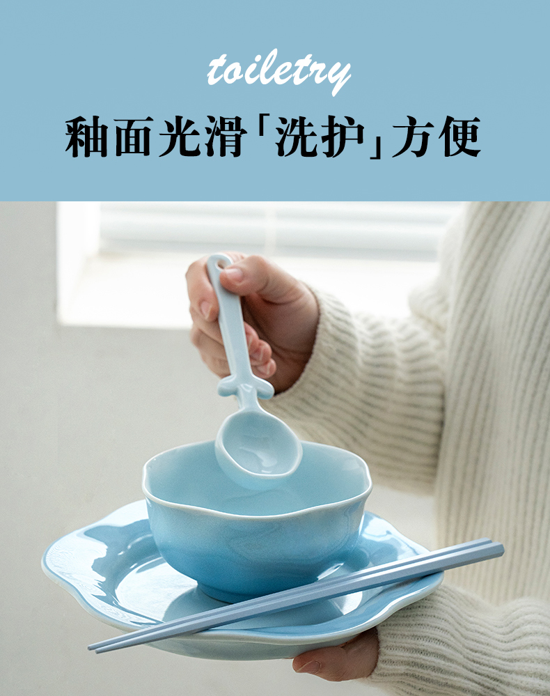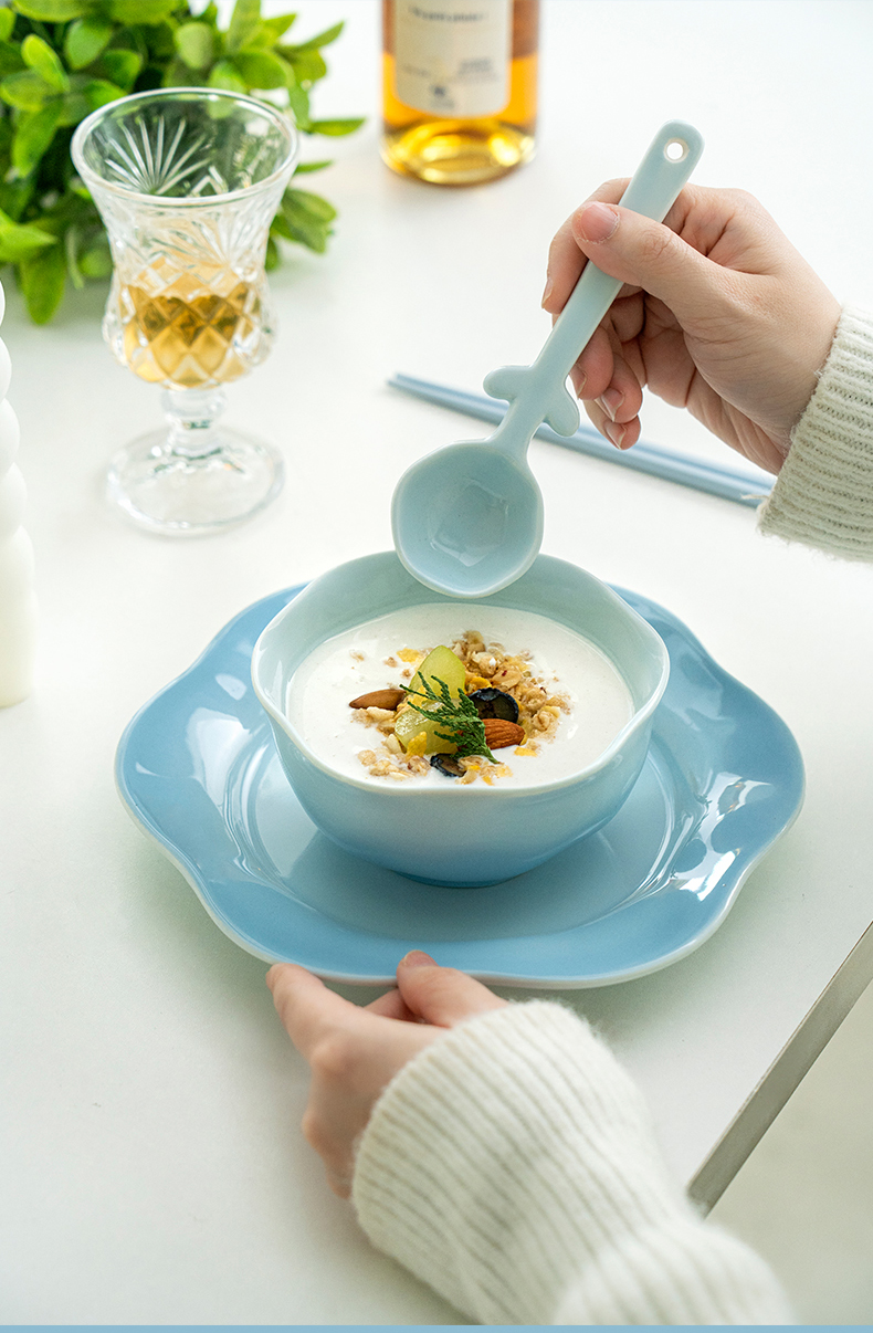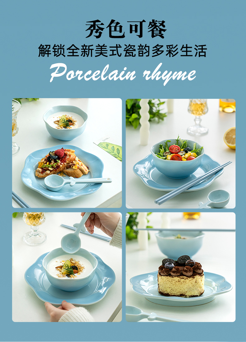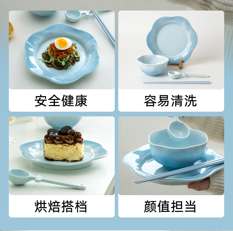 【西屋繁花碗碟4件套】餐具轻奢繁花系列碗碟4件套渐变天空蓝色家用餐具套装