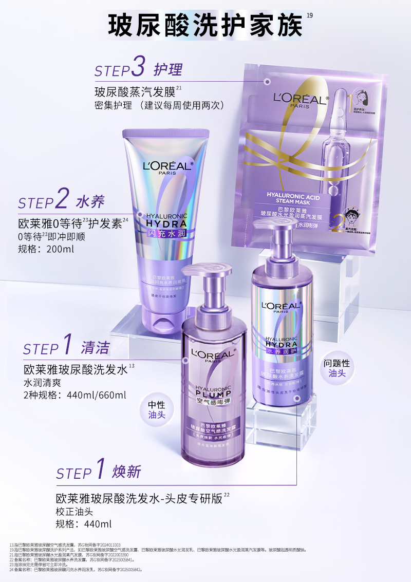 🔺玻尿酸洗发水:双酸吸油,高纯度玻尿酸补水,调节头皮水油