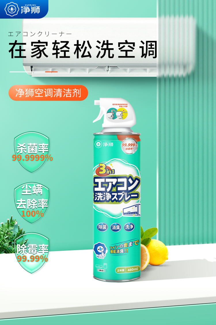 【日化洗护】净狮3合1空调清洁剂480ml (含清洁工具)QSH