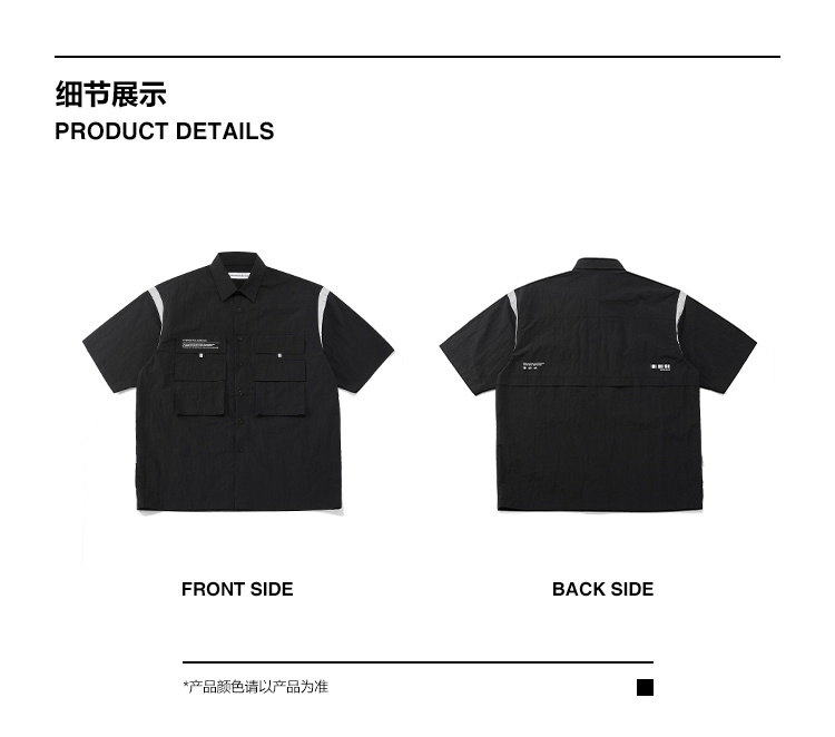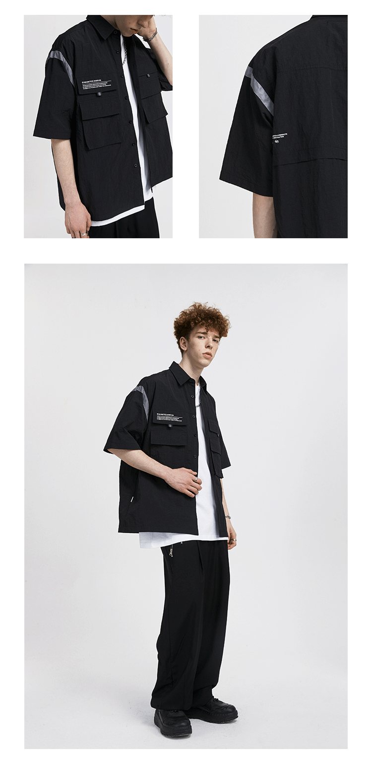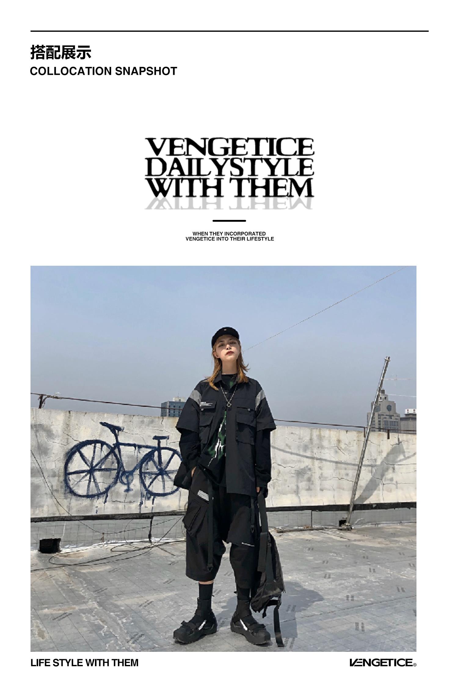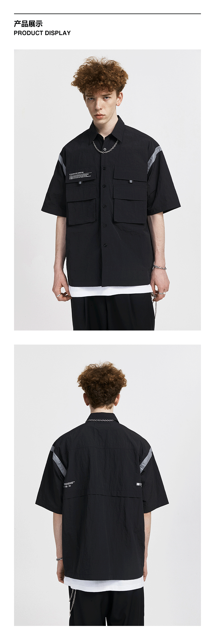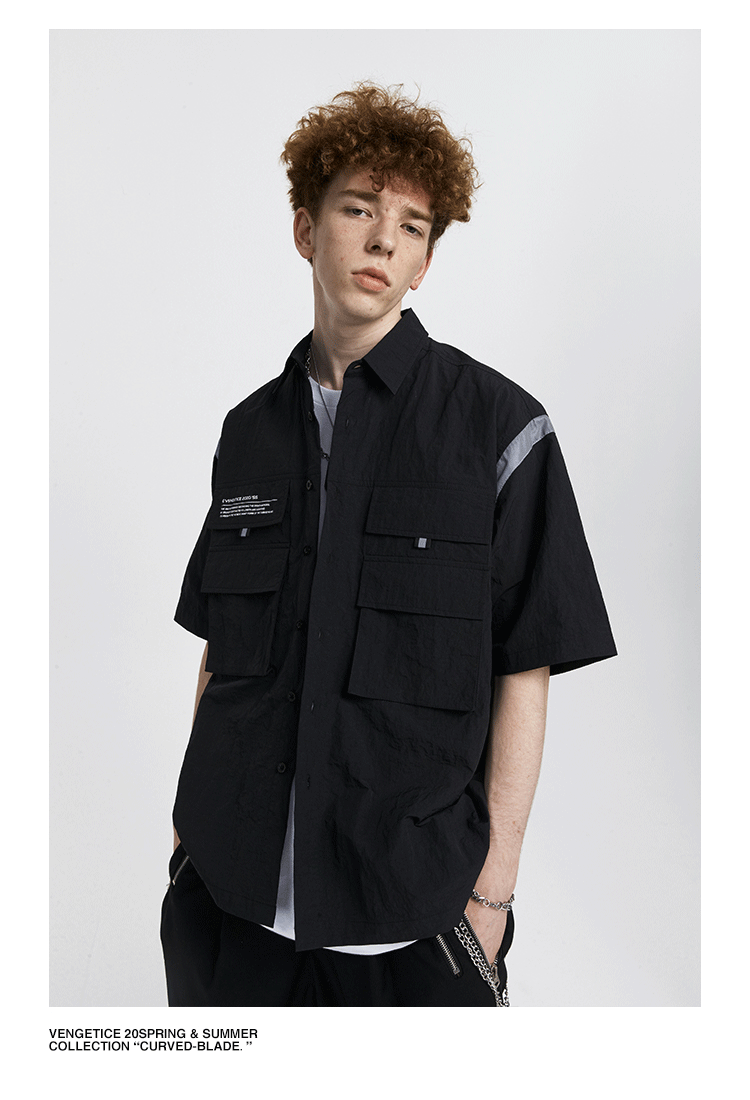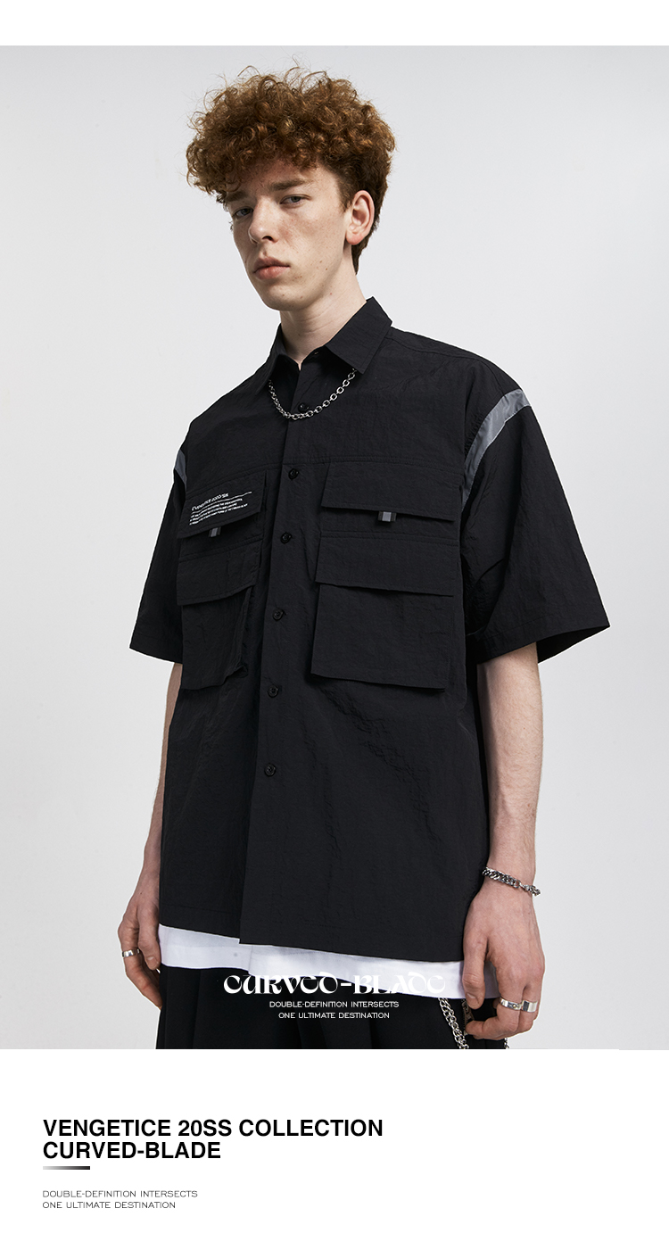 FPA(VENGETICE)反光条口袋短袖衬衫 街头工装男女国潮牌半袖衬衣