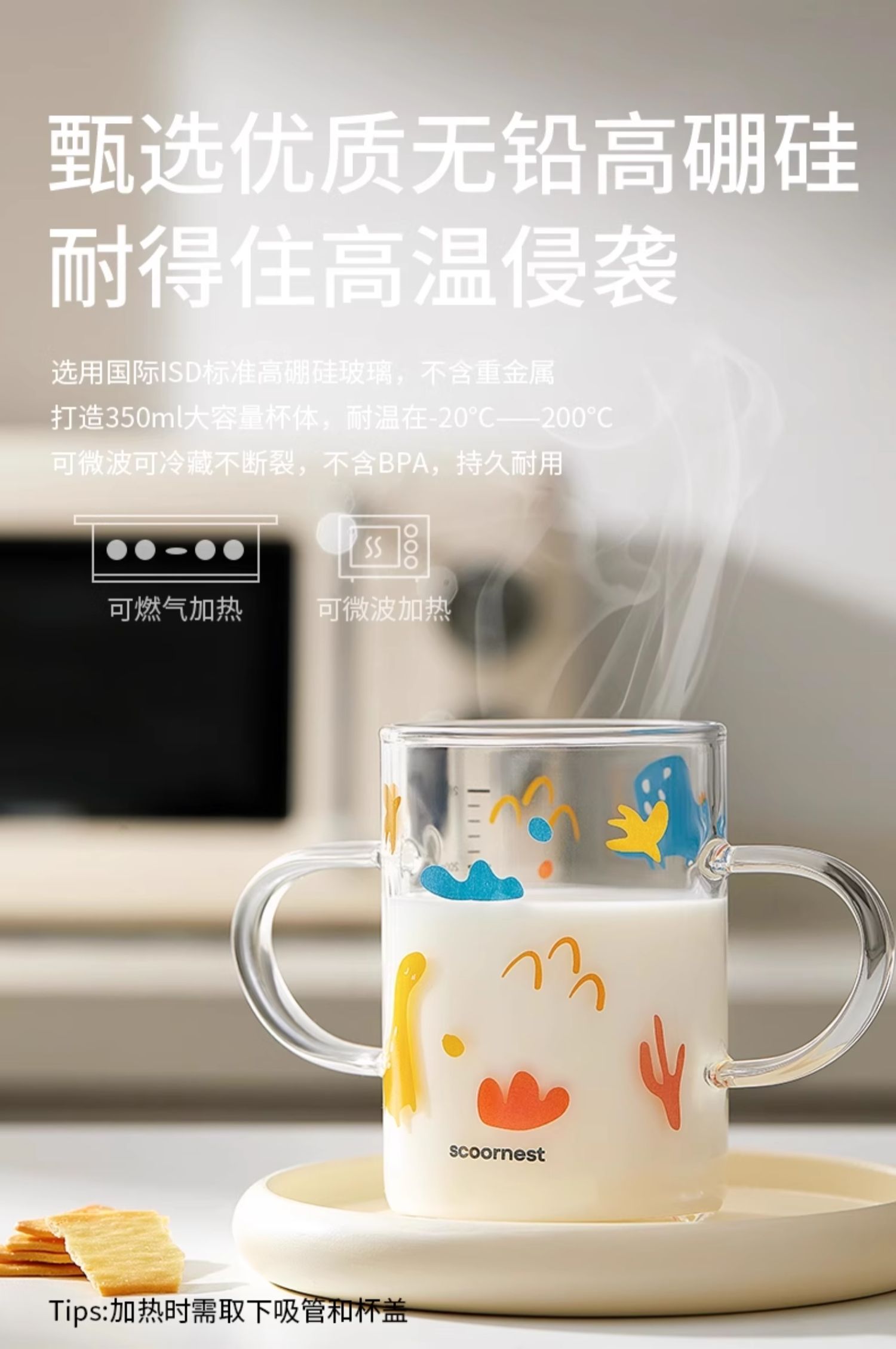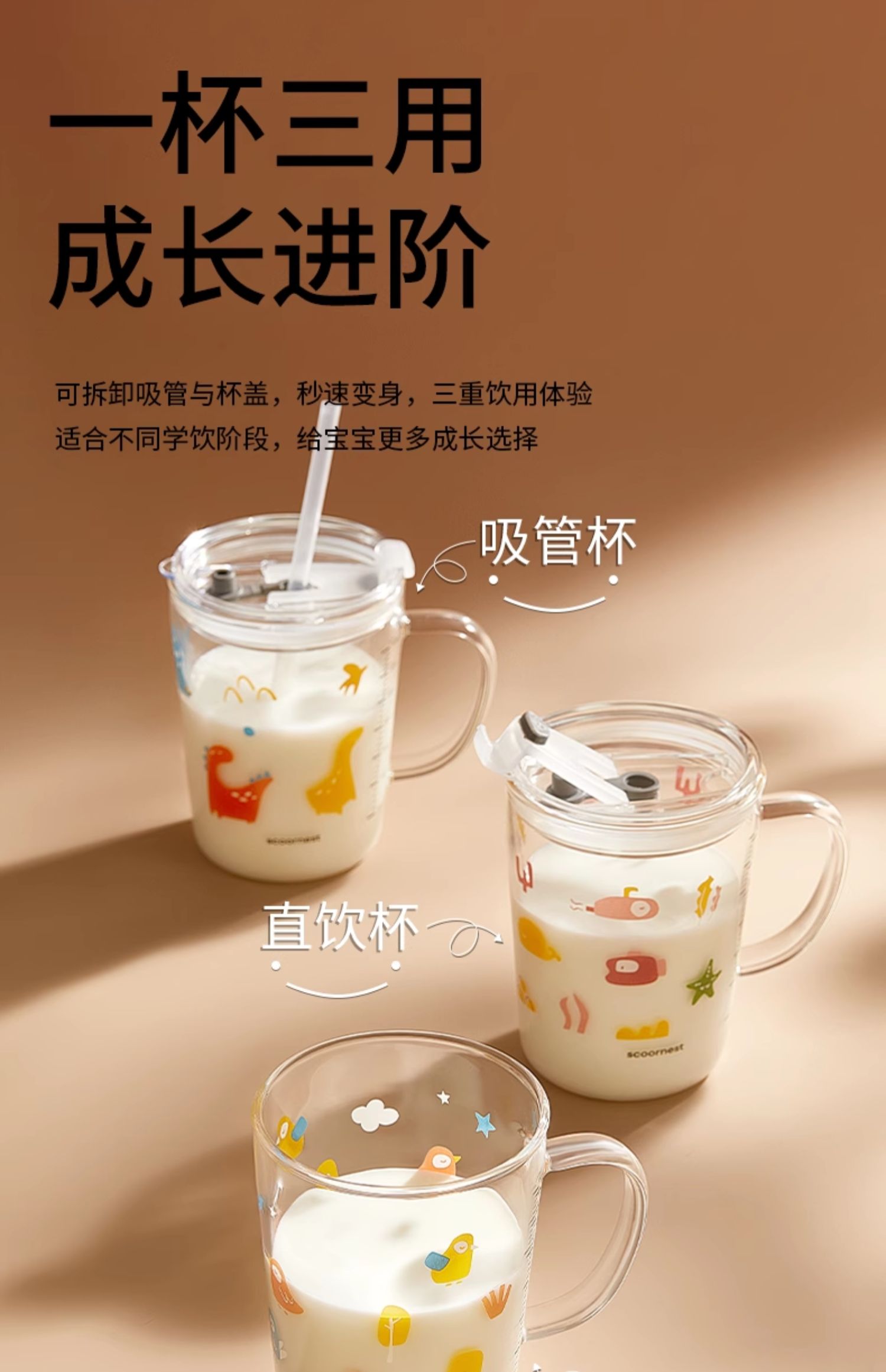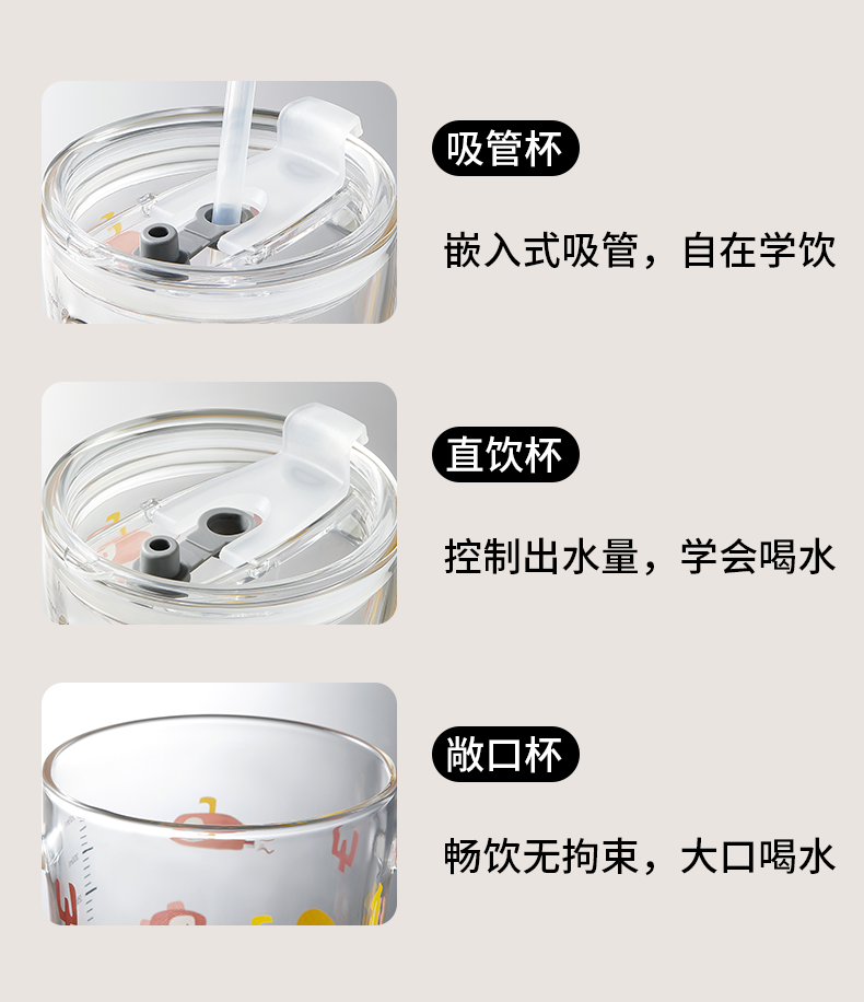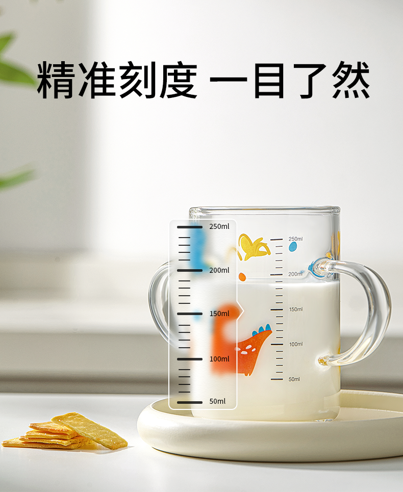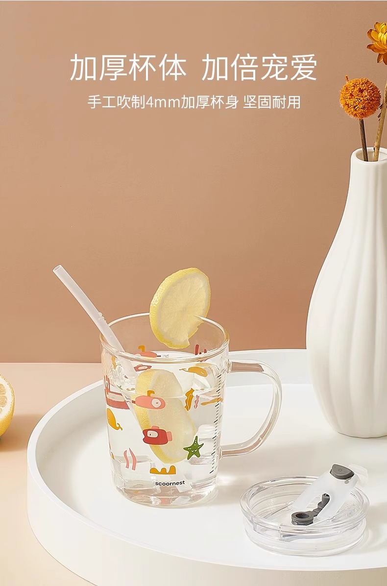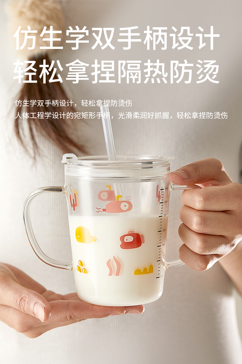 科巢儿童水杯牛奶杯带刻度吸管直饮杯玻璃学饮杯家用微波炉可加热