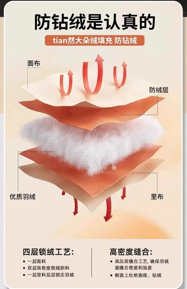 新国标90白鸭绒,蓬松填充锁温不臃肿,