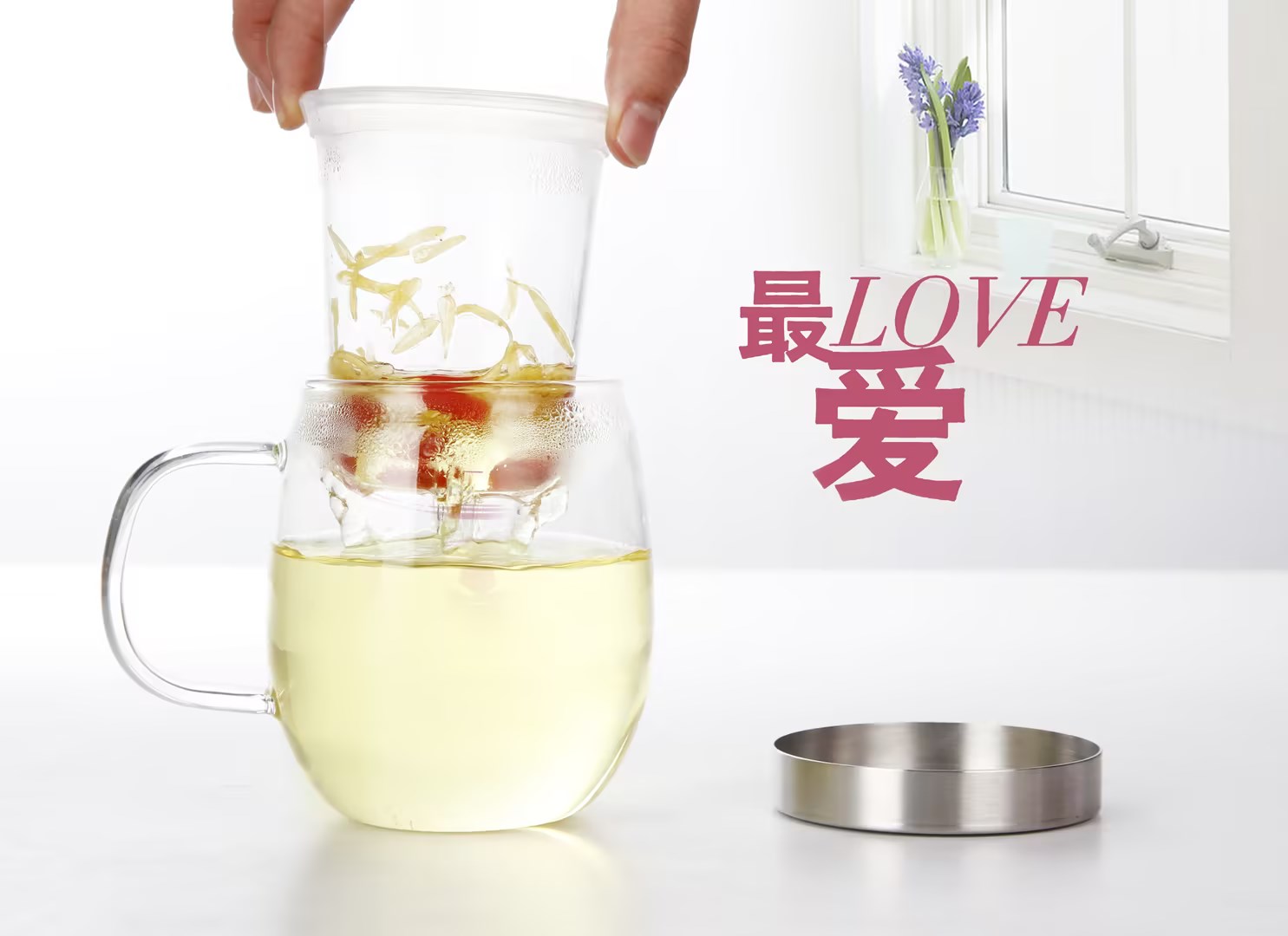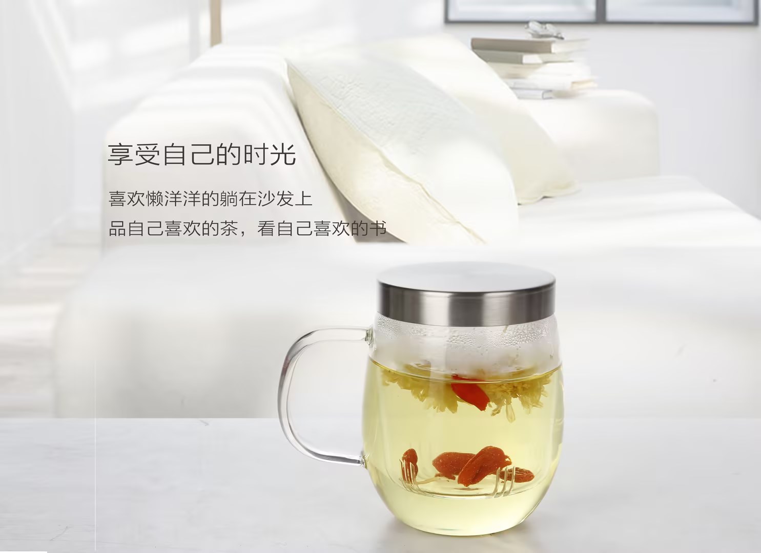 明尚德飘逸玻璃三件套杯耐高温泡茶杯450ml