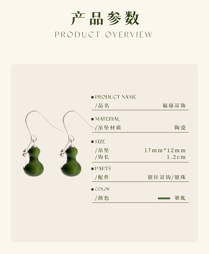 凡华造物原创福禄925银耳钉小众气质耳环女高级感新款百搭耳饰福禄925银耳环FH