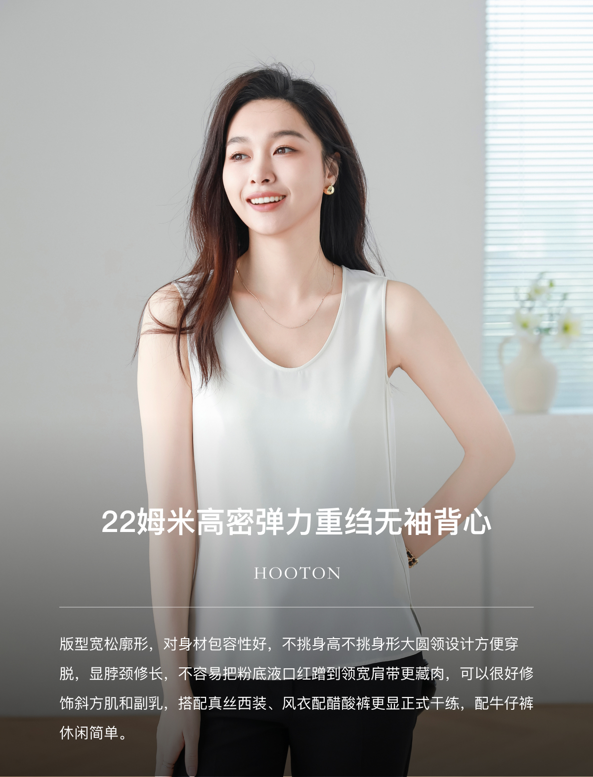 火桐hooton 高货系列 25姆米高密弹力重绉无袖背心YT2010