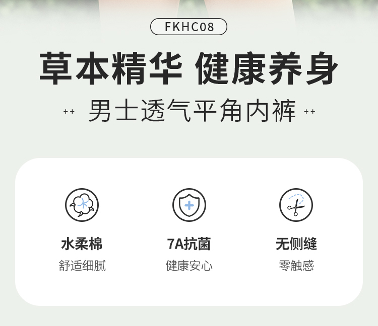 都市丽人棉平角50S水柔棉简约基础草本养生系列平角裤FKHC08