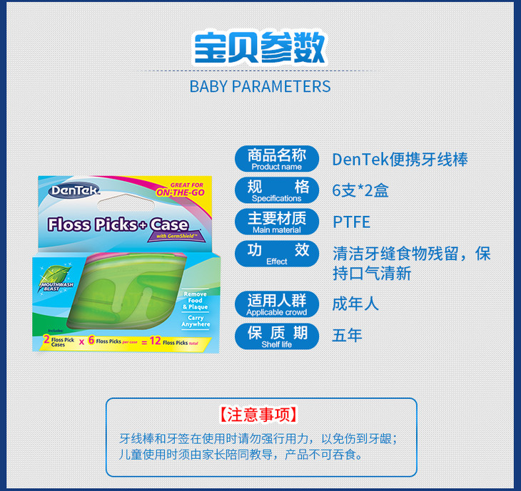 【已下架】积分兑换 | 德泰克进口旅行装牙线盒扁线便携牙线棒6支2盒(不支持无理由退换)[福利品]