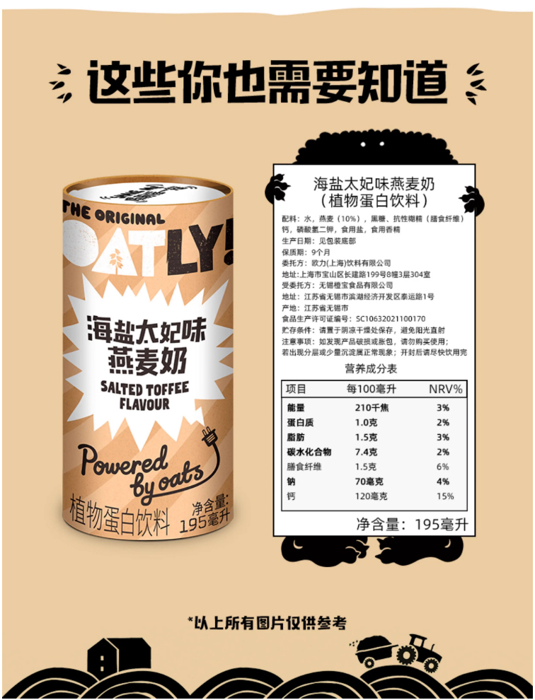 【品名】OATLY海盐太妃风味燕麦奶195ml/罐