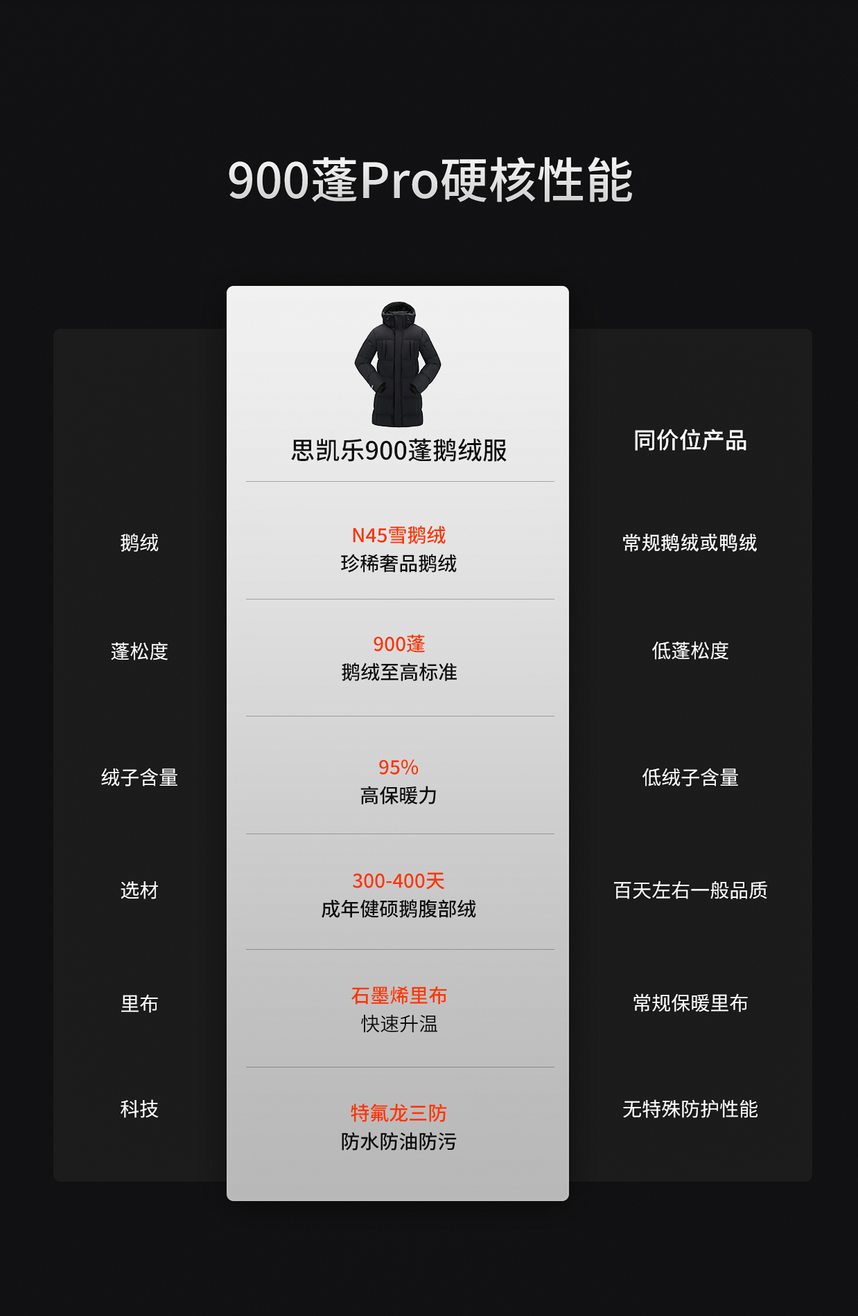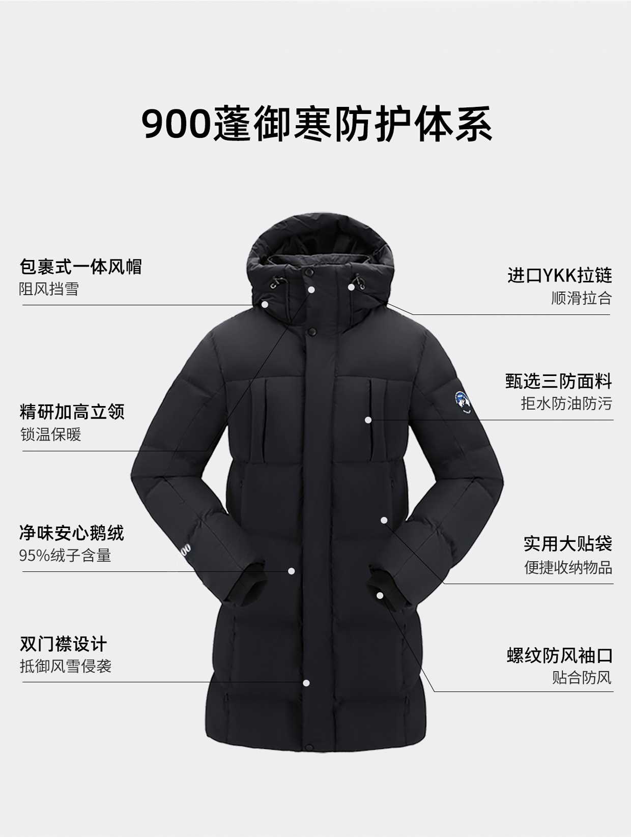 +【乐粉专属】900蓬PRO 思凯乐户外男女长款过膝安心鹅羽绒服防风加厚保暖外套F6115498/F6105498