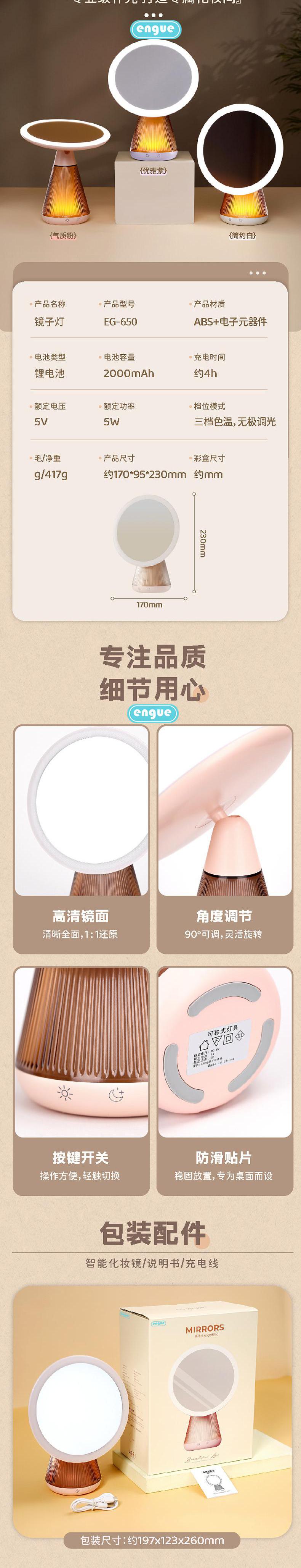 engue恩谷高清日光化妆镜-晰光proEG-650三色亮度高清还原妆容补光便携