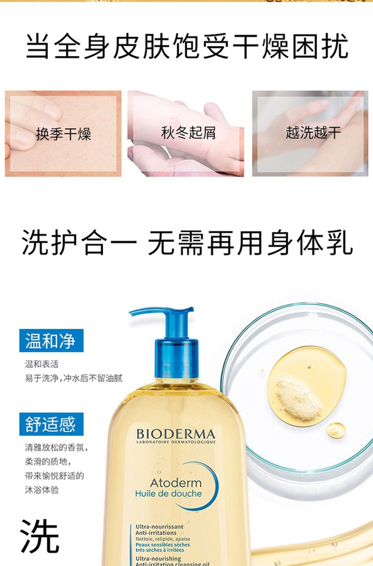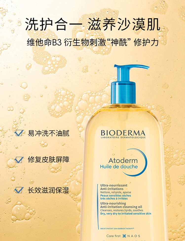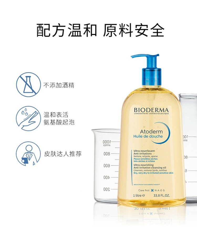 贝德玛(BIODERMA) 赋妍滋养修护沐浴油滋养沐浴露 滋润长效深层清洁肌肤滋养沙漠肌 【超值1L装】沐浴油